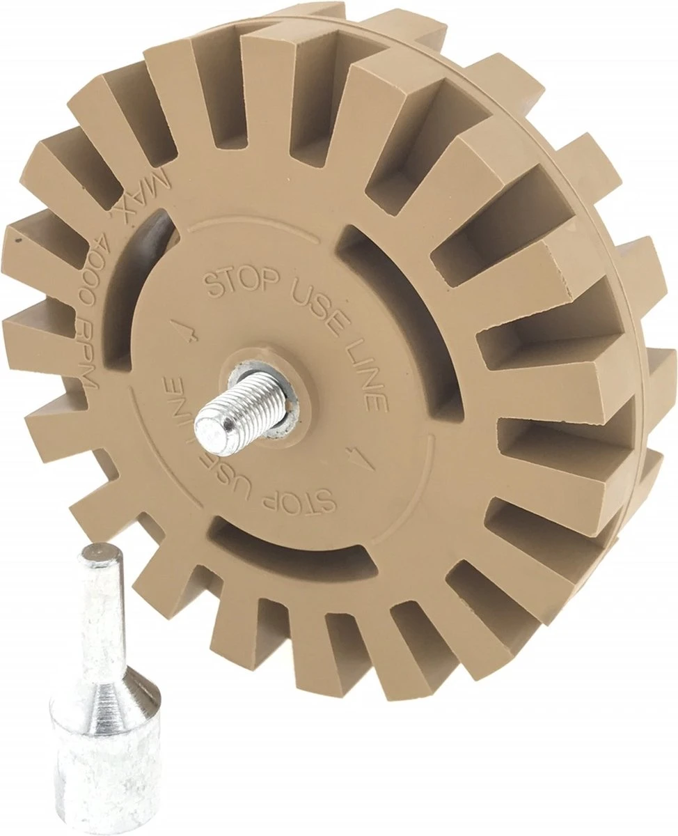 De Hofftech Folie- & Stickerverwijderaar – Caramelschijf – 100 mm is perfect voor het verwijderen van autostickers en tape van de auto, maar kan ook gebruikt worden voor het verwijderen van stickers en folie op andere oppervlakken. Het tandwielontwerp zorgt ervoor dat de schijf snel en effectief werkt, zonder schade te veroorzaken aan de ondergrond.