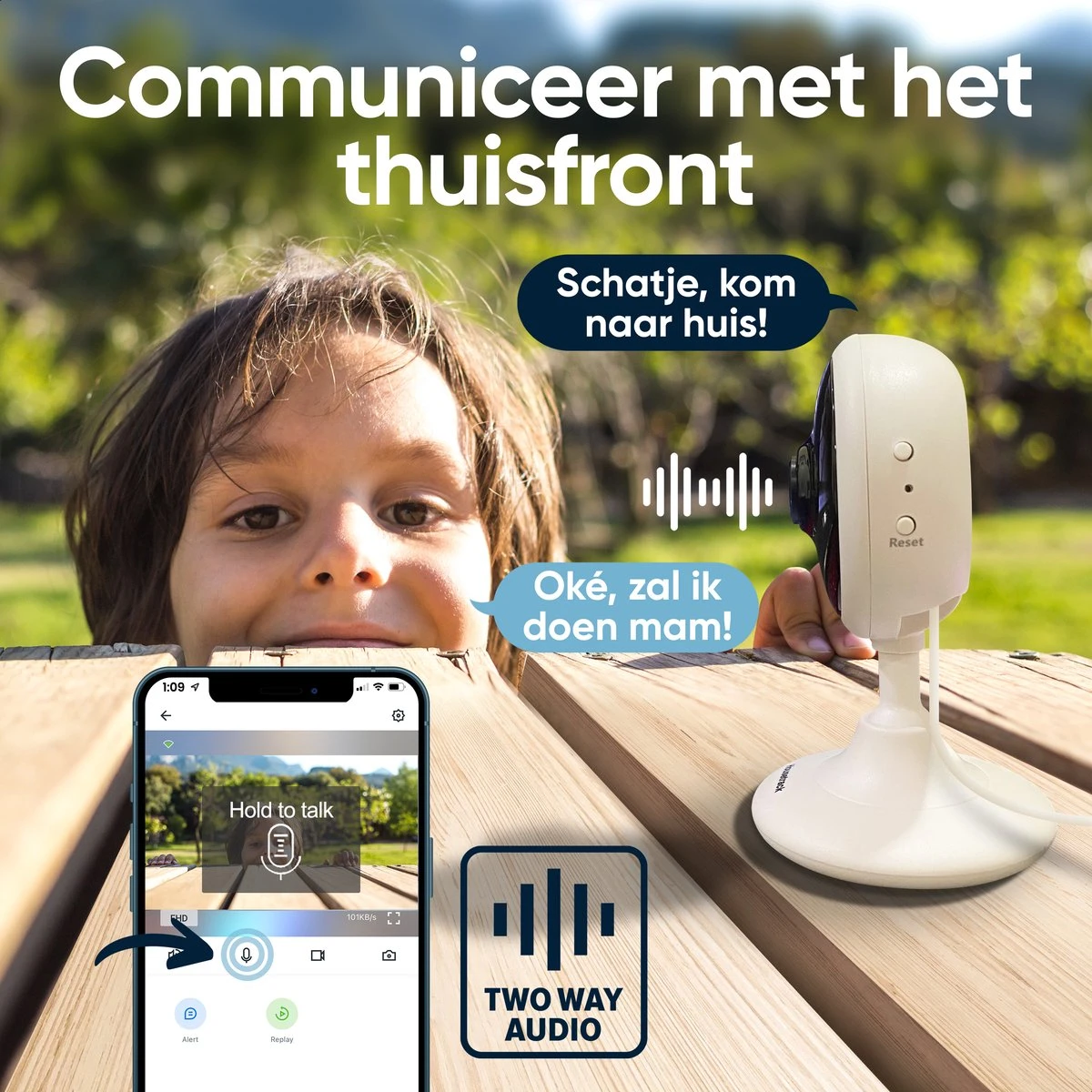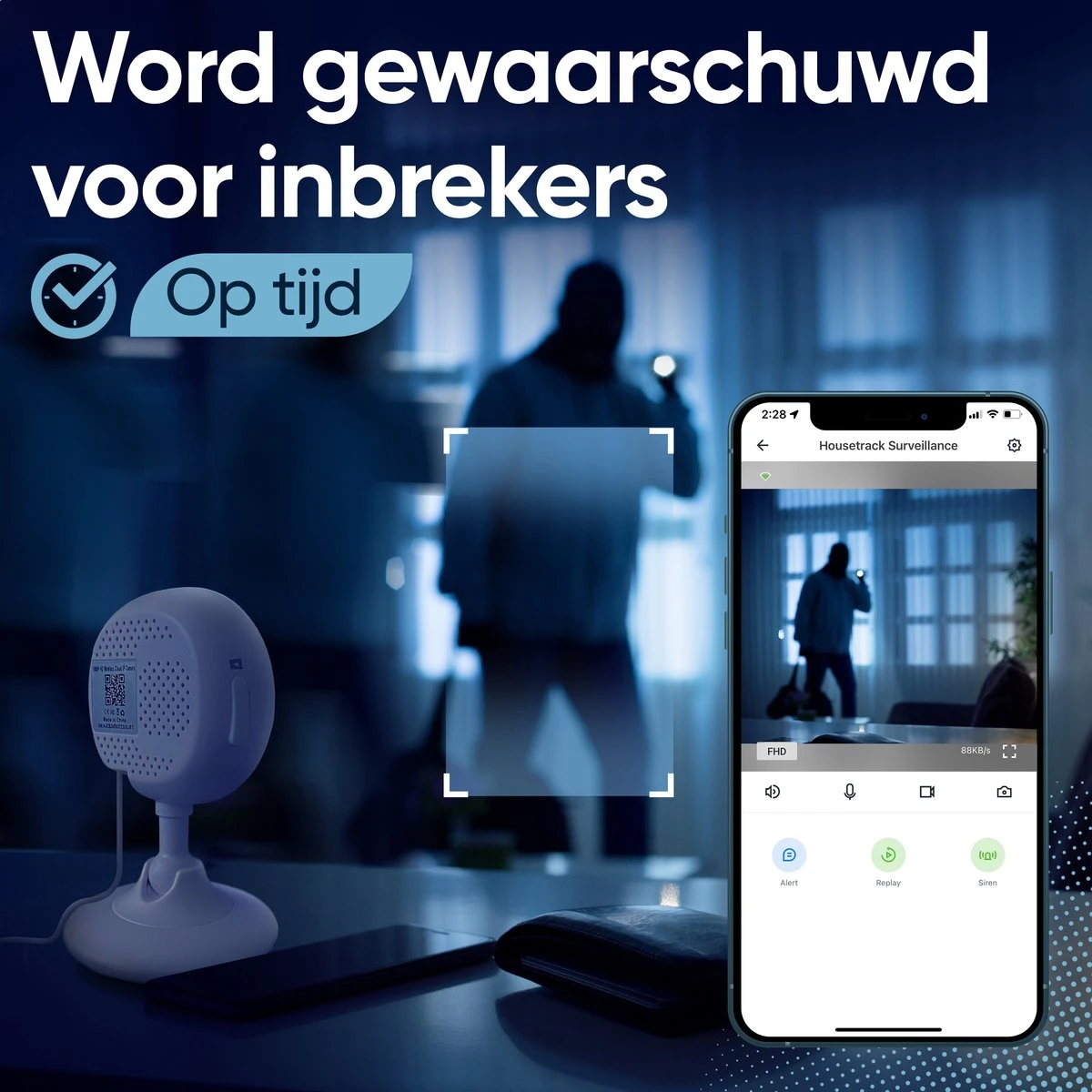 Met de Housetrack Bewakingscamera voor binnen weet je altijd wat er in of om je huis gebeurt. Naast het feit dat je de livestream kunt bekijken EN beluisteren, krijg je ook een melding als je wilt wanneer er beweging wordt gedetecteerd. Camerabeelden kunnen worden opgeslagen op de bijgeleverde micro SD-kaart OF via de Cloud en kunnen eenvoudig worden bekeken via de app. Voel je veilig met deze binnenhuis camera met 140° groothoek. Das pech inbrekers weg!