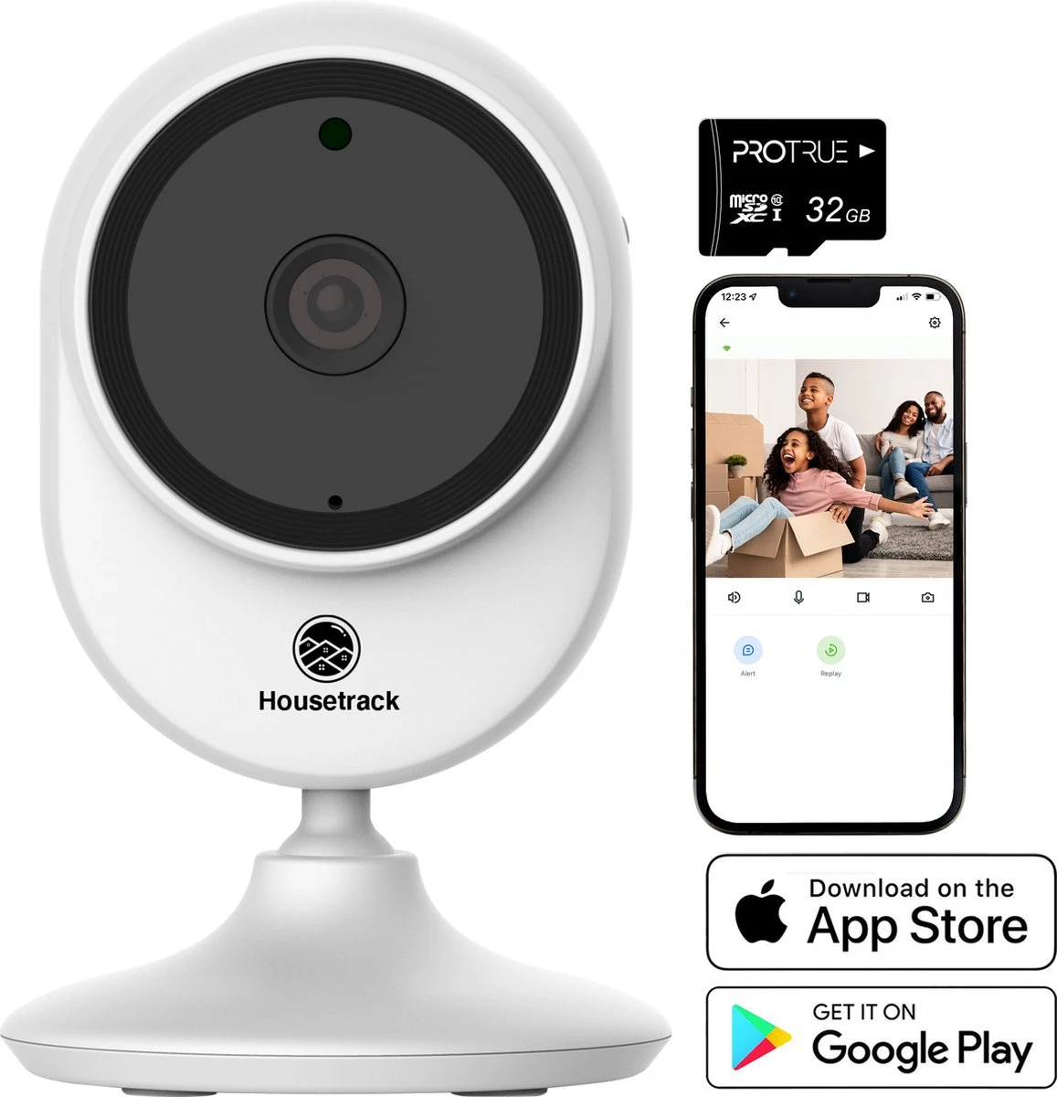 Met de Housetrack Bewakingscamera voor binnen weet je altijd wat er in of om je huis gebeurt. Naast het feit dat je de livestream kunt bekijken EN beluisteren, krijg je ook een melding als je wilt wanneer er beweging wordt gedetecteerd. Camerabeelden kunnen worden opgeslagen op de bijgeleverde micro SD-kaart OF via de Cloud en kunnen eenvoudig worden bekeken via de app. Voel je veilig met deze binnenhuis camera met 140° groothoek. Das pech inbrekers weg!
