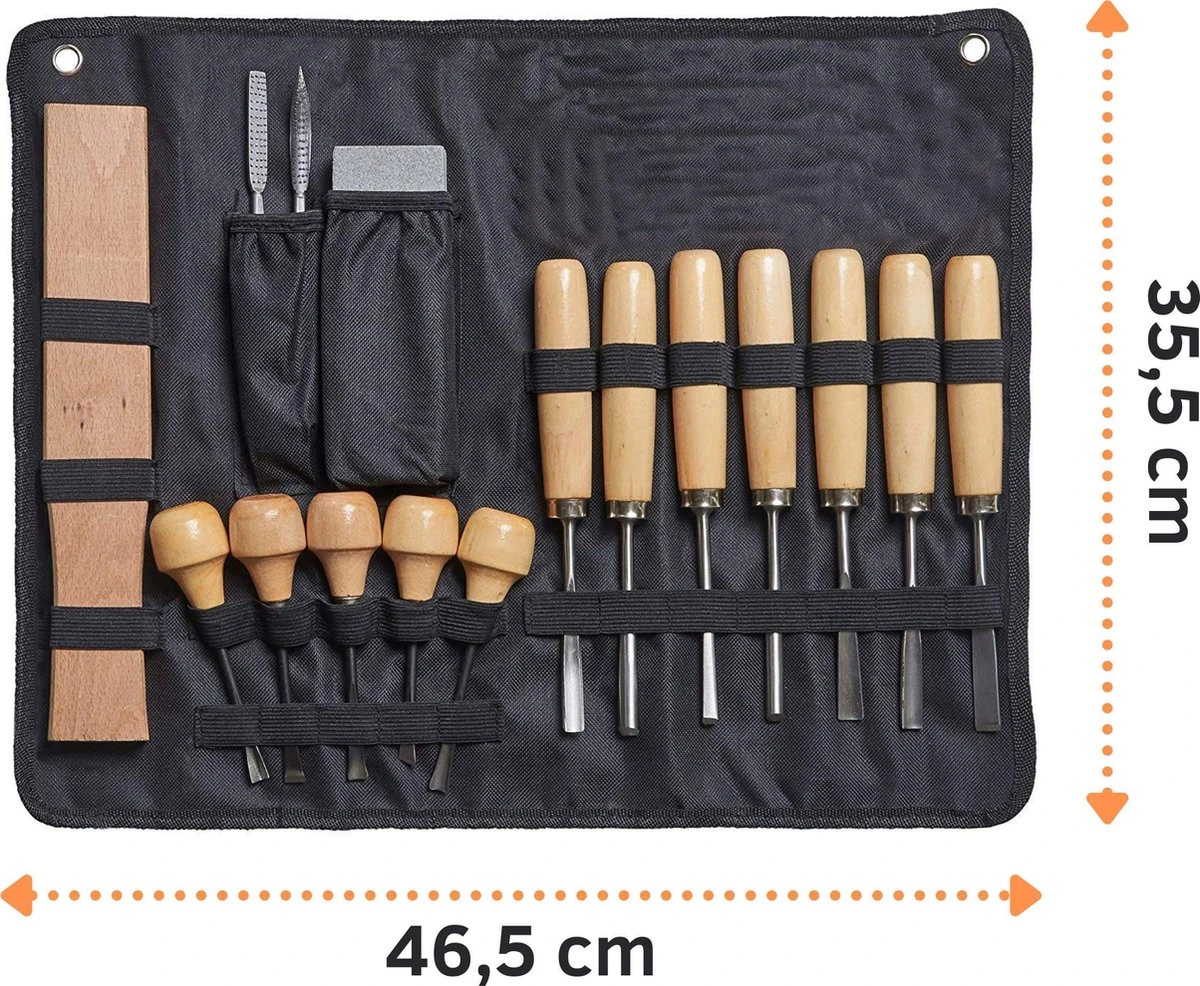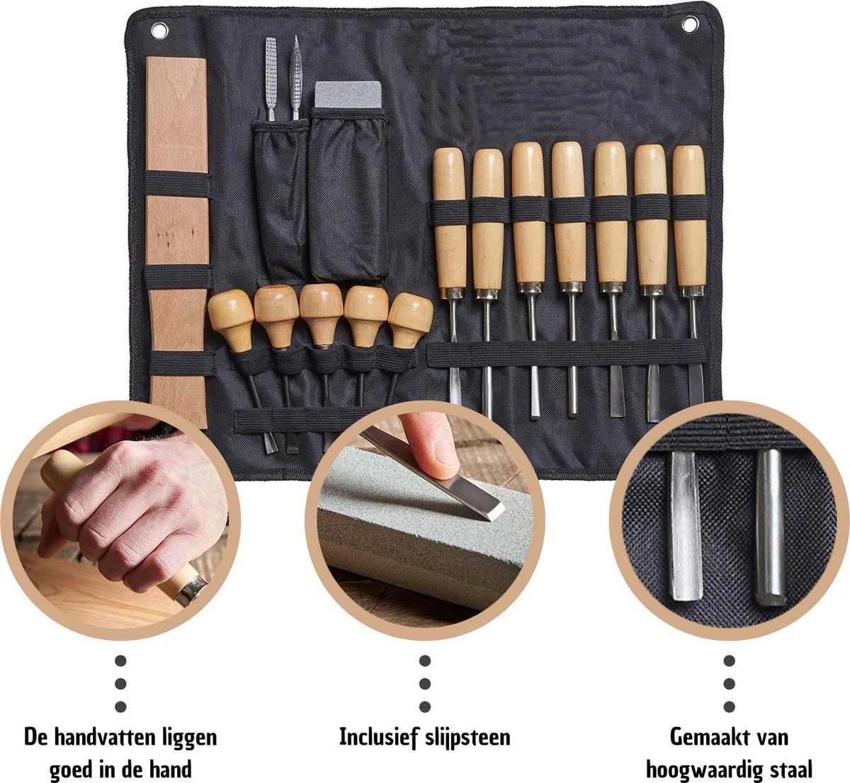 Ontdek je creativiteit en maak de mooiste creaties van hout met deze houtsnijset! Met de houtbewerking gereedschap tools heb je een complete set in handen en kun je meteen aan de slag. Het gereedschap is vervaardigd van hoogwaardige materialen en komt in een handige opbergzak. Deze 16-delige set bevat alles om je houtbewerkingsproject tot een succes te brengen!