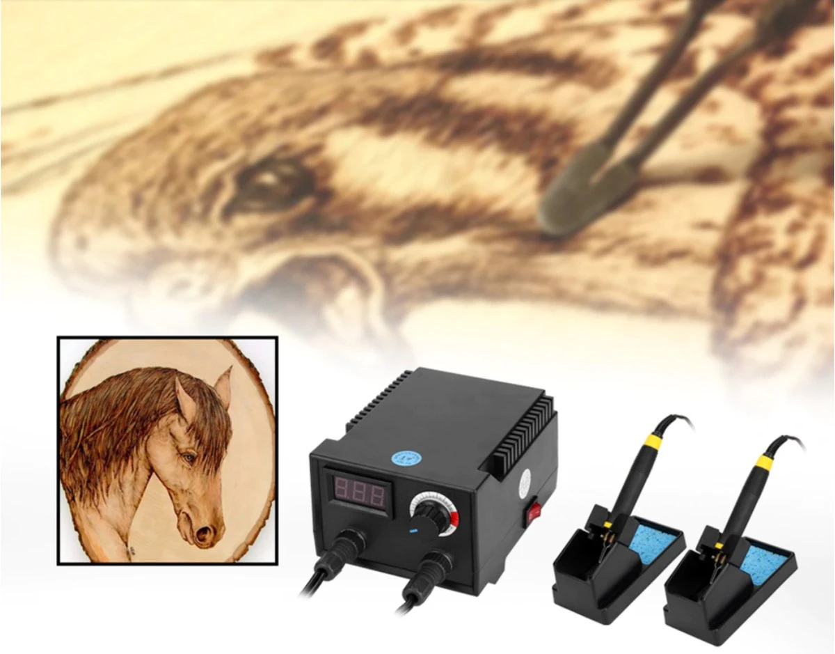 De temperatuur van de pen is gemakkelijk te regelen via de controller, uitgerust met een digitale display. De pen zelf heeft een anti slip en tevens zacht handvat. Er kan nauwkeurig mee gewerkt worden, waardoor details volledig tot recht komen. Daarnaast wordt er bij deze set een spons meegeleverd. Deze pyrografie set is geschikt voor bewerkingen op hout en leer.