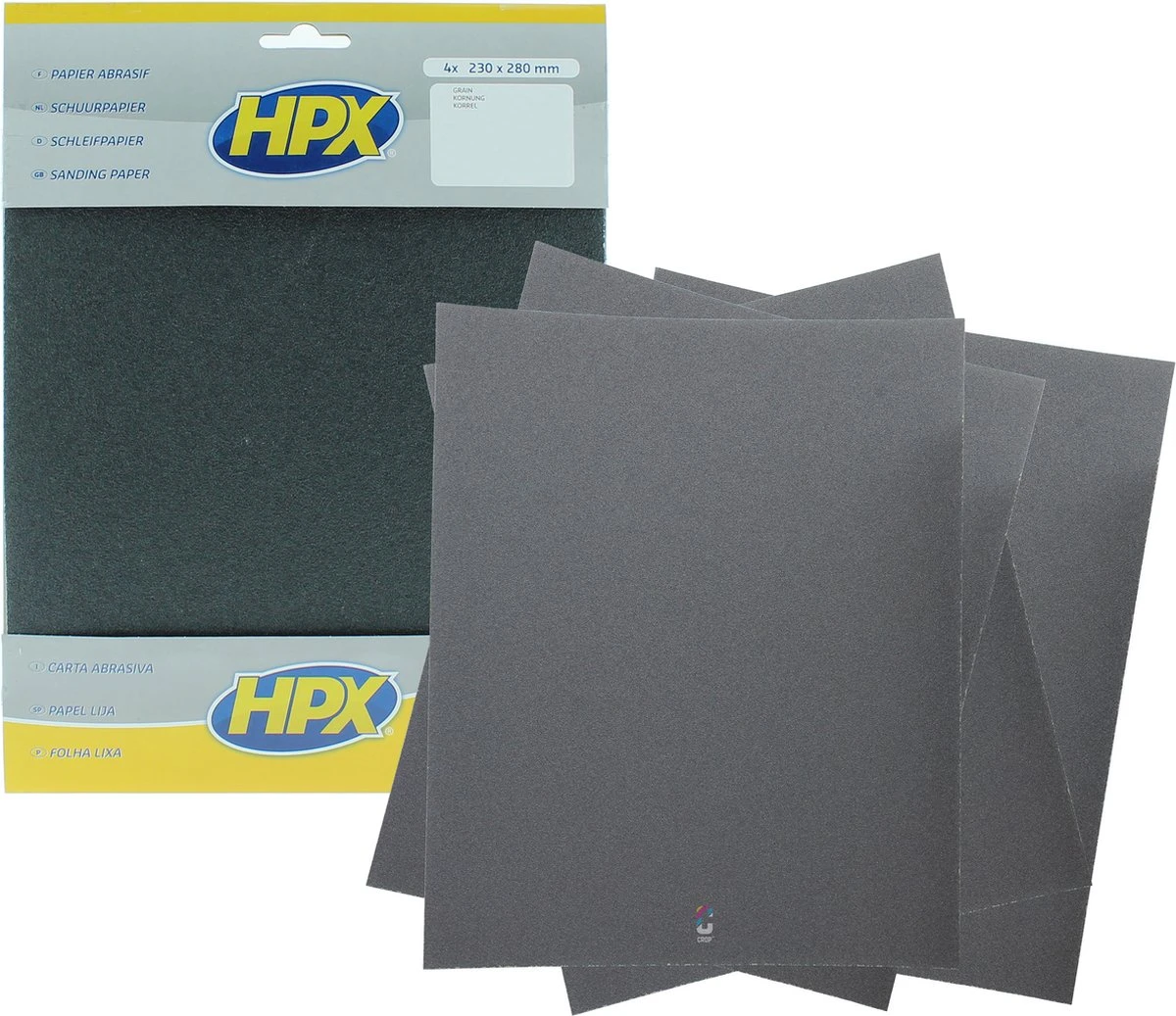 Set HPX schuurpapier met vier vellen van P2000. Zowel droog als nat te gebruiken.