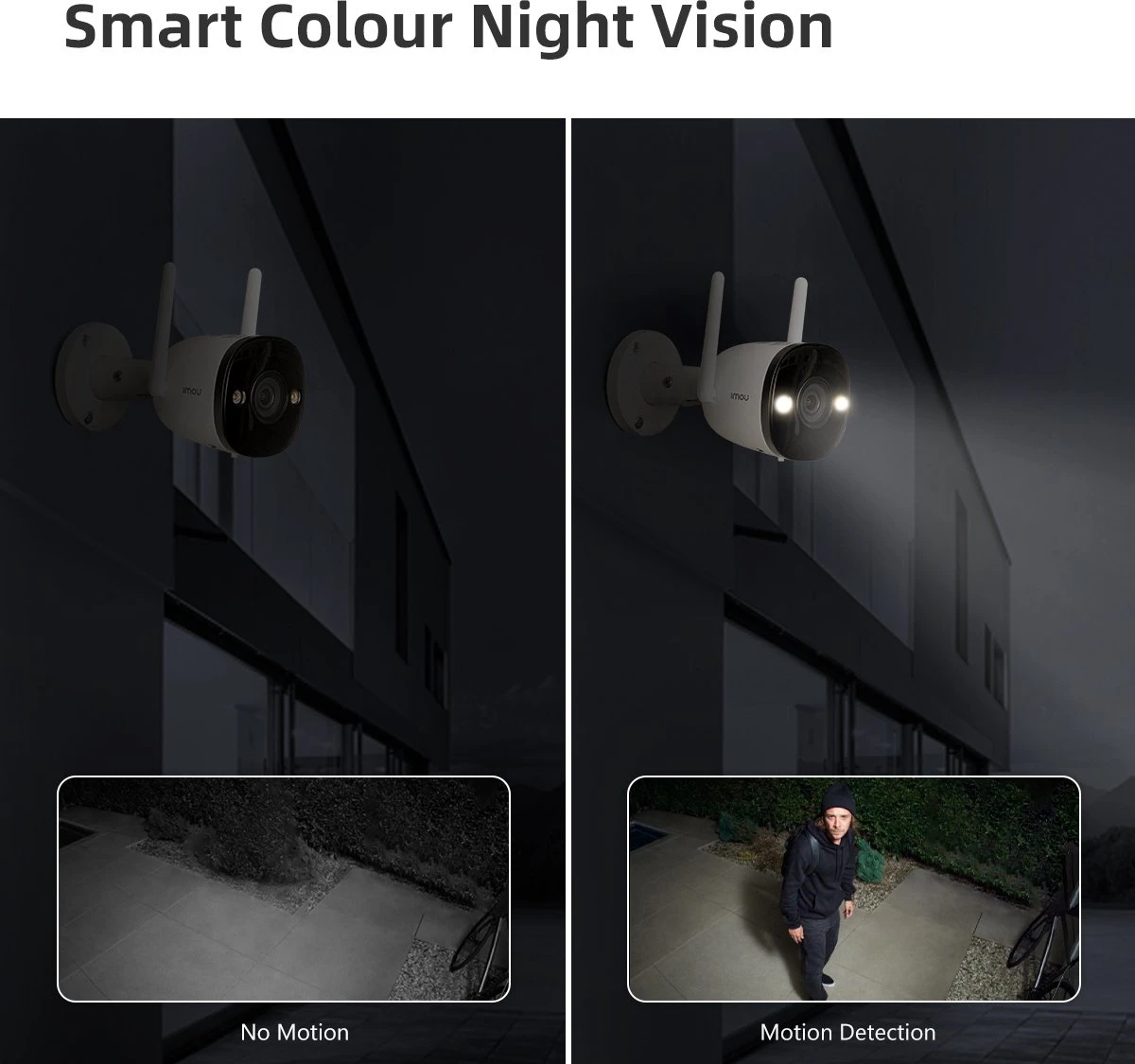 2. Nachtzicht in kleur: als het donker wordt, activeert de camera de ingebouwde schijnwerpers voor afbeeldingen in kleur.