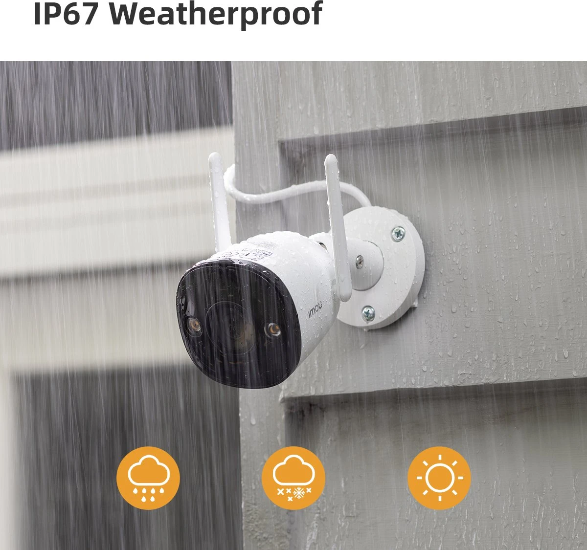 De Imou Bullet 2 – 2 MP is een compacte buitencamera met 4 nachtzichtstanden, waaronder Smart Full Color nachtzicht. Deze camera zorgt zowel dag als nacht voor optimale beveiliging. De Smart Full Color-modus toont afbeeldingen in grijstinten, maar wanneer beweging wordt gedetecteerd, gaan 2 heldere LED-spots branden, die ongewenste bezoekers in kleur vastleggen. Ook beschikt de Bullet 2 – 2MP over twee-weg gesprek; horen en reageren op wat wordt waargenomen. Deze buitencamera is voorzien van een MicroSD slot, WiFi & LAN, een ingebouwd alarm en heeft een IP67 certificaat (bestand tegen weer en wind).