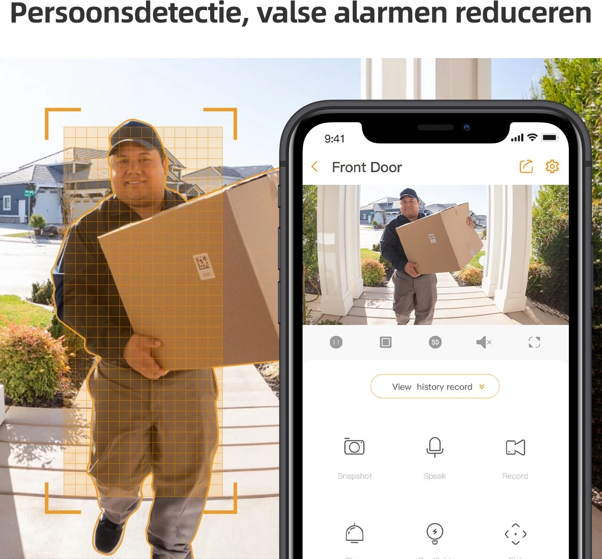 Twee-weg gesprek: naast luisteren is het ook mogelijk om te reageren via de beveiligingscamera. Handig als de pakketbezorger voor de deur staat wanneer je niet thuis bent, maar ook om ongewenst bezoek weg te jagen.