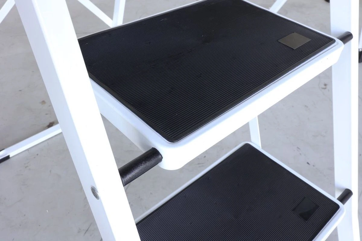 Deze compacte trap heeft 4 ruime treden van elk 30 x 20 cm. De treden bevinden zich op 23, 46,5, 69,5 en 93 cm hoogte. De trap heeft een totale hoogte van 126,5 cm inclusief handgreep. Omdat de trap eenvoudig in te klappen is, is het makkelijk te verplaatsen en neemt het weinig ruimte in beslag wanneer het niet gebruikt wordt.