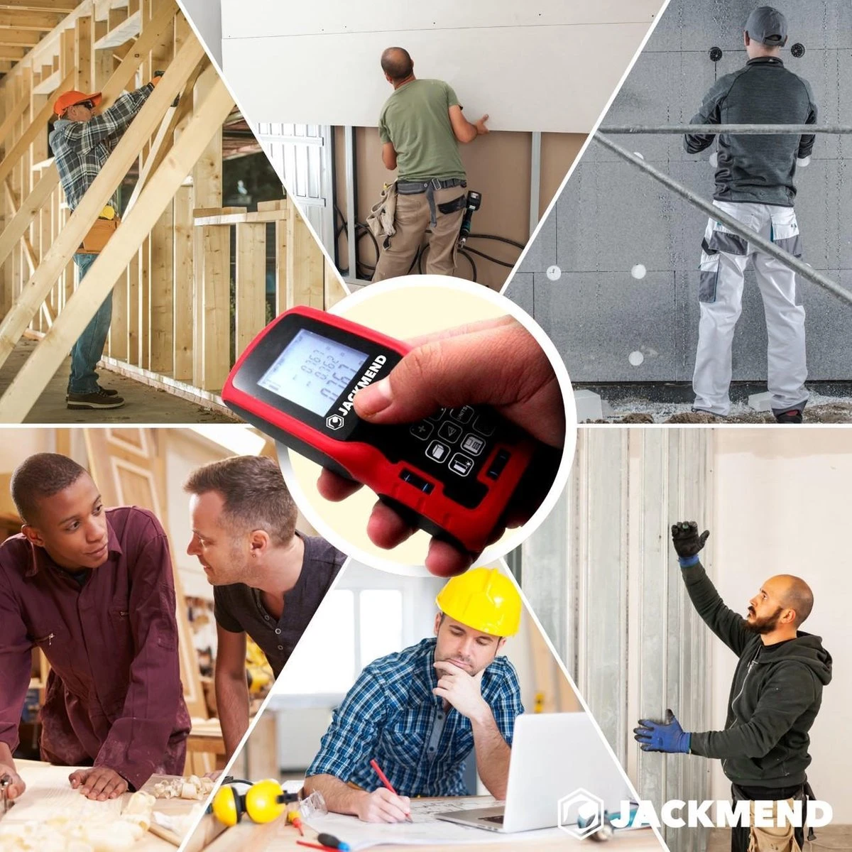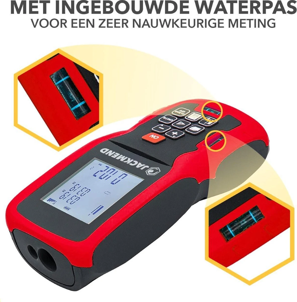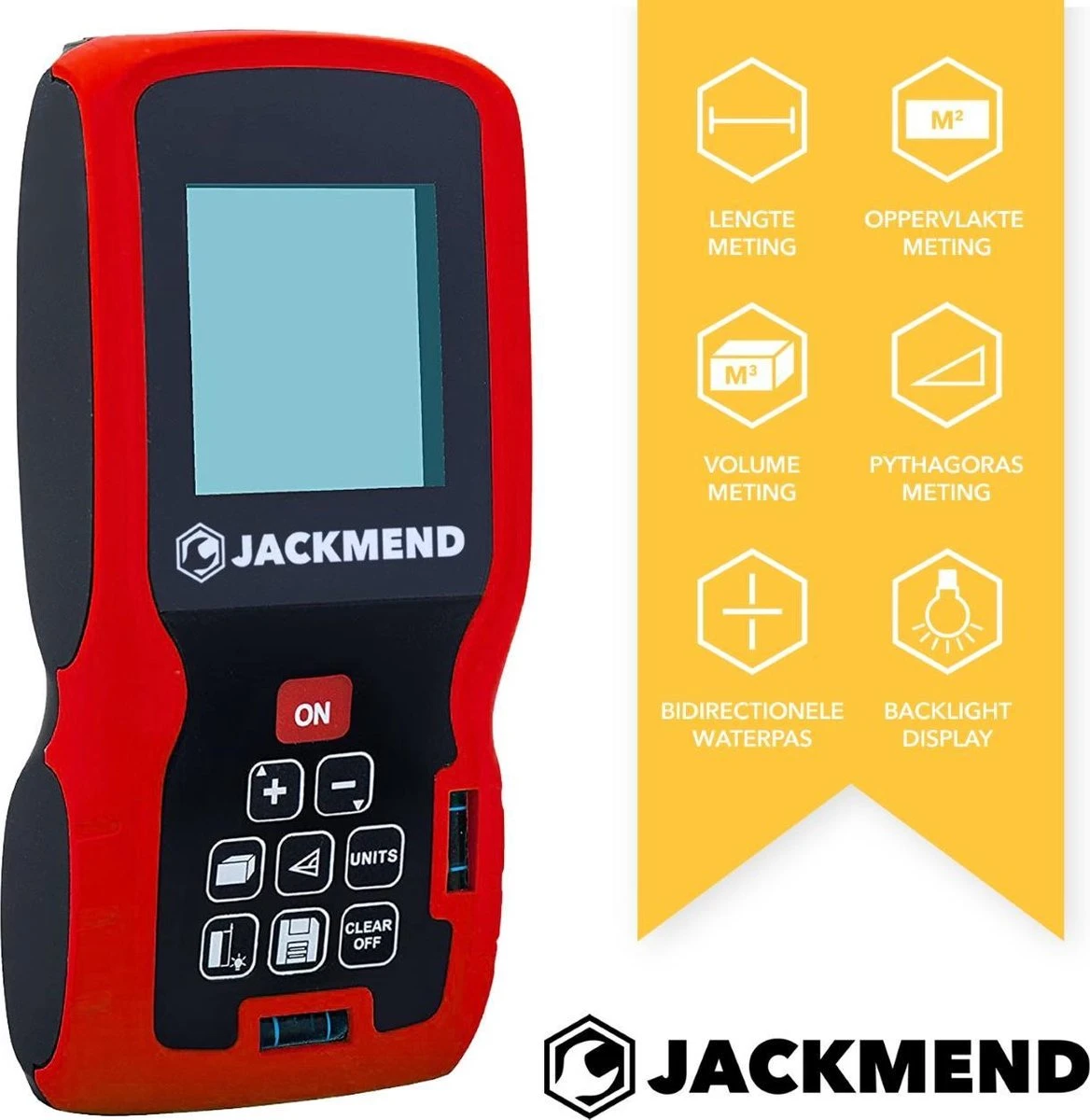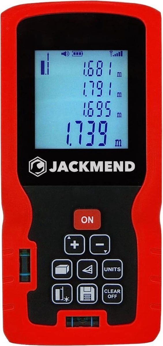 Professioneel of thuis bouwvakker? Beginner of gevorderde klusser? De compacte JACKMEND Laserafstandsmeter van AXTIES kan iedereen gebruiken! Bereken de oppervlakte, het volume, de lengte of Pythagoras in een ruimte tot wel 100 meter ver. Tot op de 1,5mm accuraat en binnen 0,1-3 seconden heb je al de benodigde cijfers. Met de benodigde CE en FDA certificaten. Inclusief gratis beschermhoes voor de schokbestendige lasermeter en AAA-batterijen. Bestel vandaag nog en breng de ultieme kwaliteitsproducten in huis met JACKMEND!
