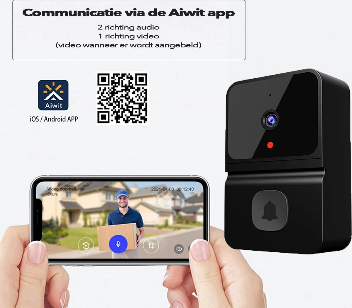 Zeer betrouwbare Aiwit app voor communicatie met de deurbel.