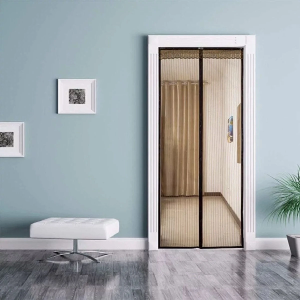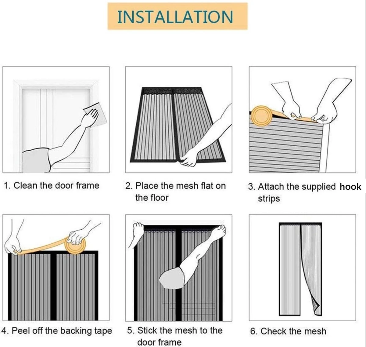 Eens u de klittenband heeft bevestigd, hoeft u enkel het vliegengordijn erop te plakken en vast te hangen met de extra punaises. Wij maken gebruik van magneten waardoor het vliegengordijn vanzelf weer sluit nadat er iemand doorheen is gelopen. Zo krijgen de insecten niet de kans om erdoorheen te vliegen en waait het niet zomaar openen wanneer er een flinke wind langs komt waaien.