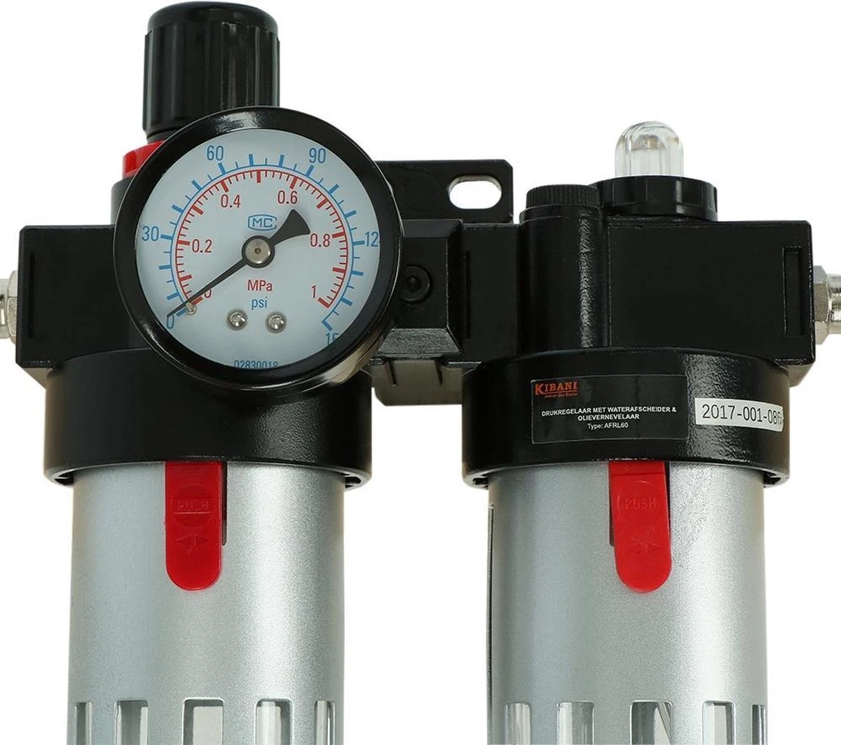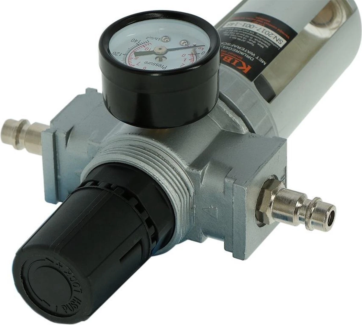 Goed onderhoud is essentieel voor een optimale werking van je luchtdrukgereedschap. Deze Kibani drukregelaar met waterafscheider helpt je daarbij: hij filtert onzuiverheden en condens uit de perslucht. Daardoor zal het luchtdrukgereedschap minder snel roesten.