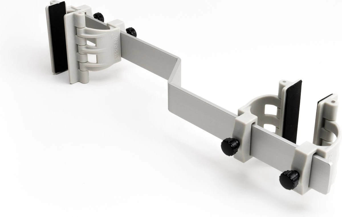 Kierr Flex 100 is eenvoudig verstelbaar en klembaar ZONDER boren & schroeven. De raamuitzetter/vastzetter en deuruitzetter/vastzetter is gemaakt van lichtgewicht aluminium en is heeft elegante flexibele klembladen met celrubber bekleed. De Kierr Flex 100 kan een kierstand creëren tussen de 5 en 15 cm. Ideaal om je ramen of deuren open te zetten om te ventileren of om juist een huisdier binnen te houden.