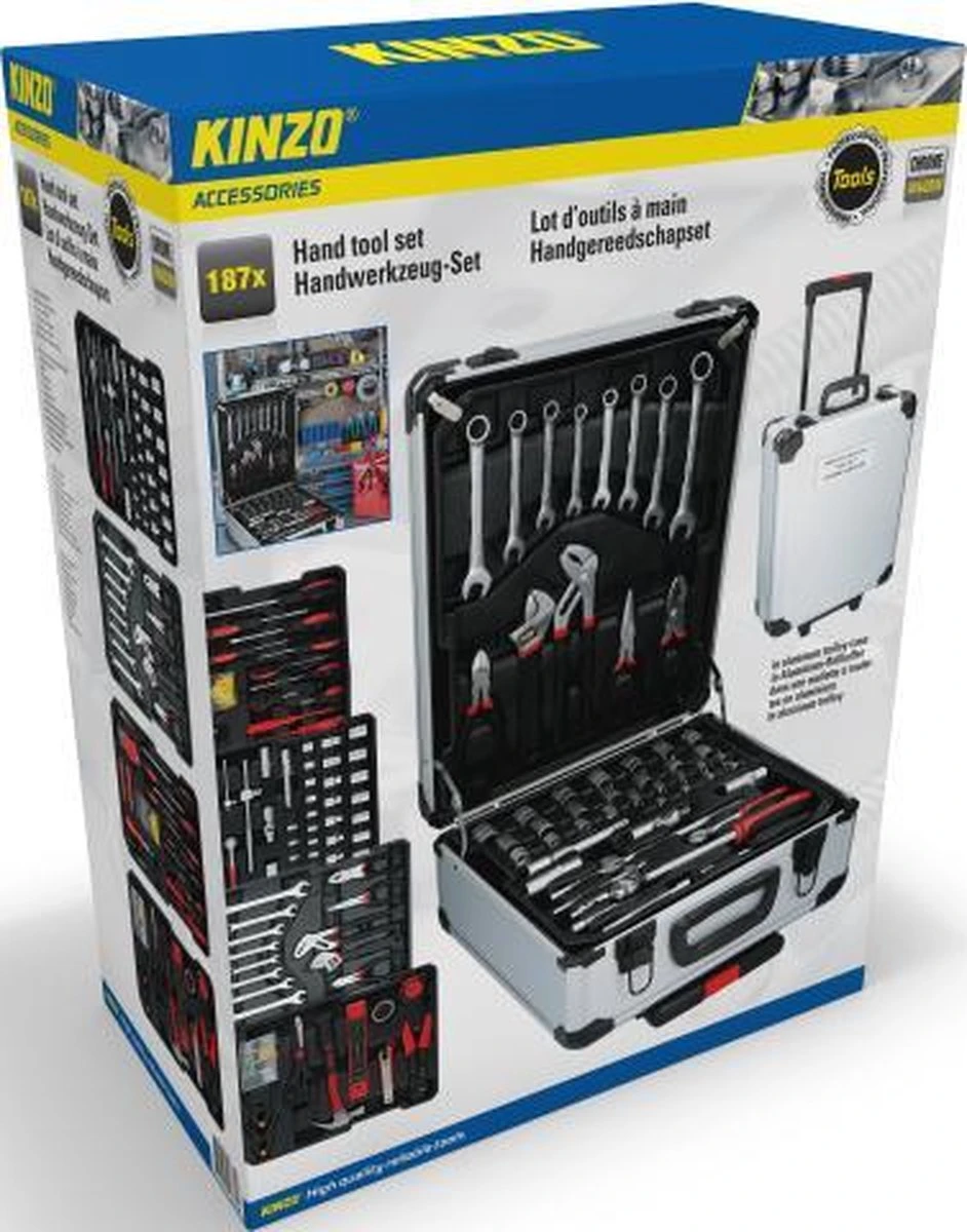 Ben je een handige klusser en wil je een set handgereedschap waarmee je alles bij de hand hebt voor je volgende klus? Deze zeer uitgebreide set van Kinzo komt in een handige rolkoffer van aluminium. In deze trolley neem je je gereedschap gemakkelijk met je mee en berg je de spullen netjes op, zodat je overzicht houdt.