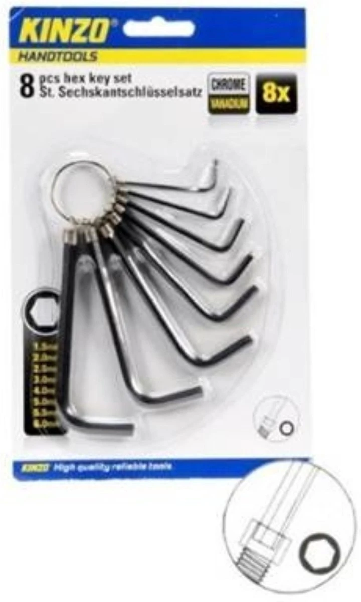 | Verpakkingsinhoud | 1x 8-delige Inbussleutelset |
