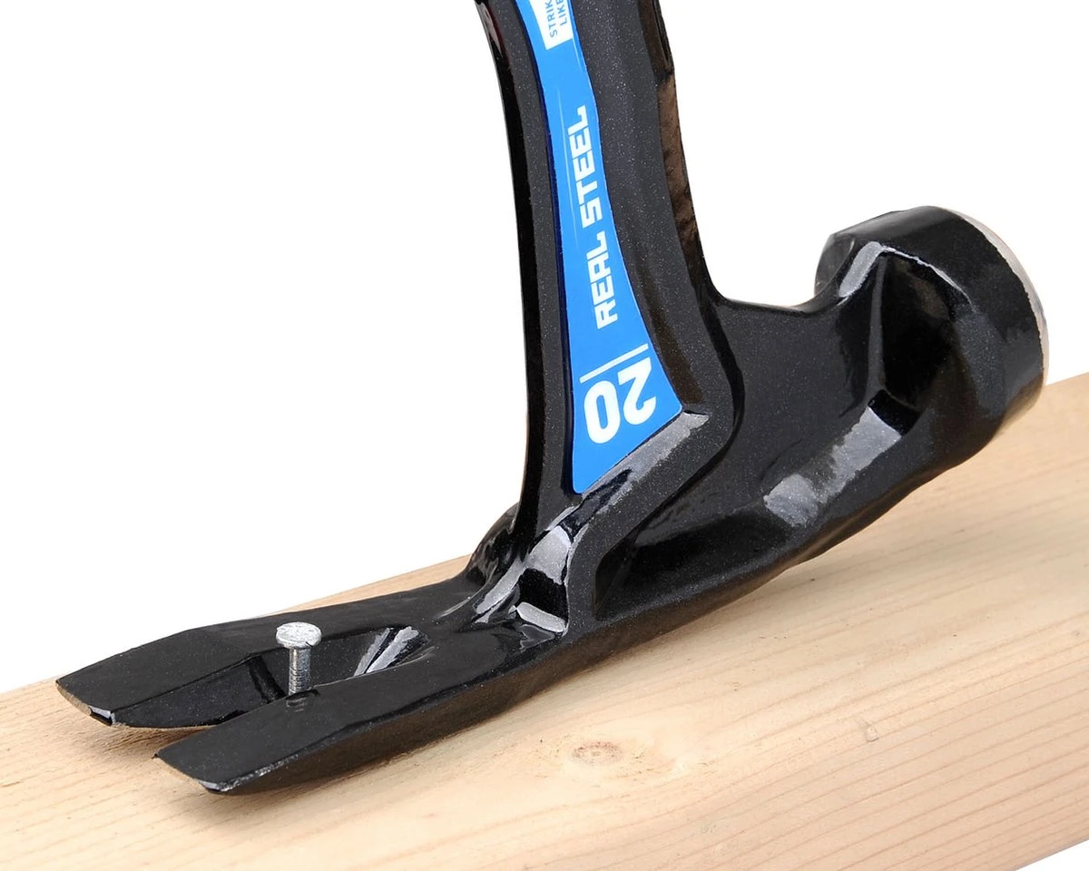 Deze klauwhamer is gemaakt van staal. De kop heeft een ingebouwde magnetische nagelhouder.