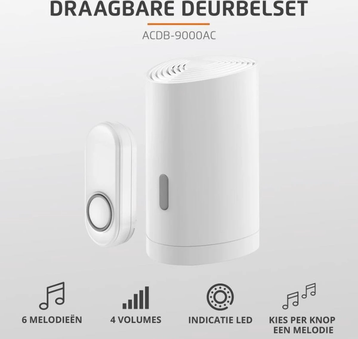 Met deze handige draadloze deurbel heb je een draadloze verbinding en heb je geen stopcontact nodig. Het enige wat je nog nodig hebt zijn 2 AA-batterijen en je gasten hoeven niet meer te kloppen. Ook is dit systeem makkelijk uit te breiden met de producten van KlikAanKlikUit. Heb je meer deurbellen? Geef elke bel dan een ander melodie en je weet meteen naar welke deur je moet gaan.