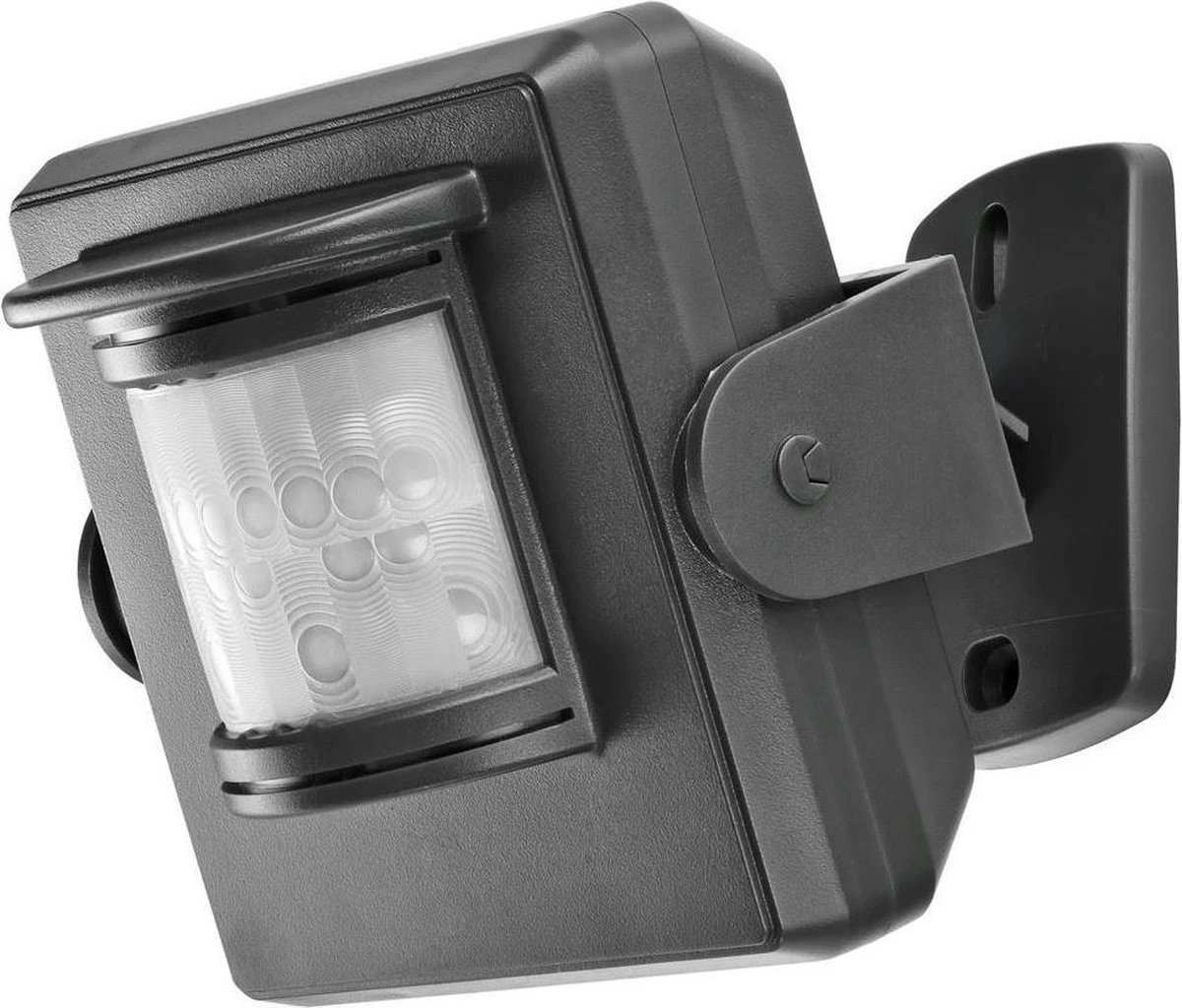 De draadloze bewegingsmelder kan binnen en buiten worden geplaatst zonder bedrading of hoogspanning, omdat de zender op batterijen werkt.