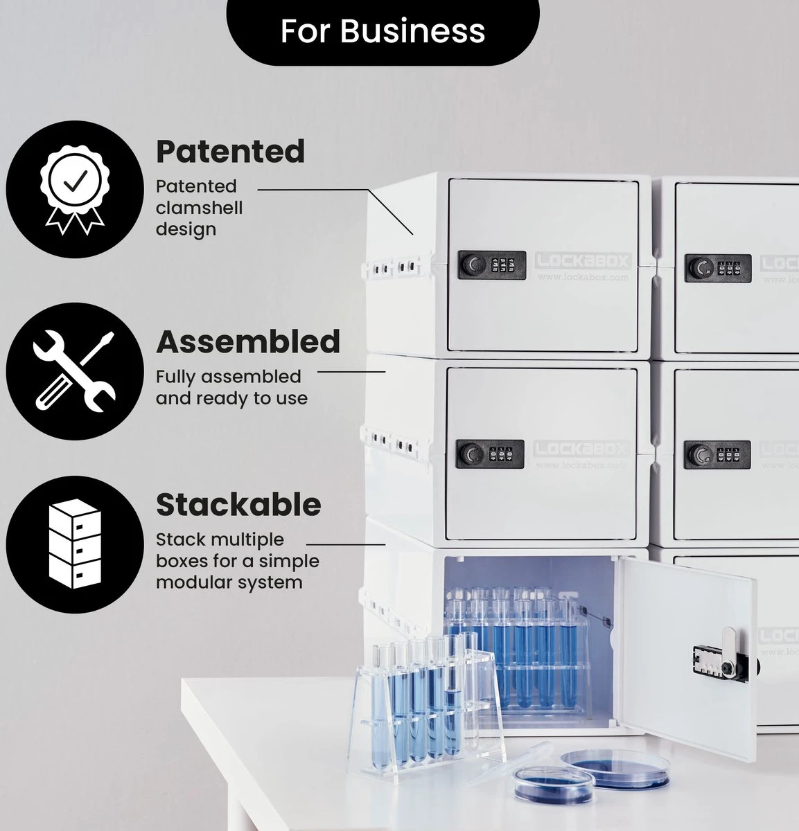 Het gepatenteerde clamshell ontwerp is de sleutel tot de kracht en hygiëne van de Lockabox®, terwijl efficiënte verwerking in Britse fabrieken de kwaliteit consistent houdt en het product geschikt maakt voor commercieel en dagelijks gebruik. Alle Lockabox® afsluitbare medicijnkastjes worden kant-en-klaar geleverd met 2 jaar garantie.