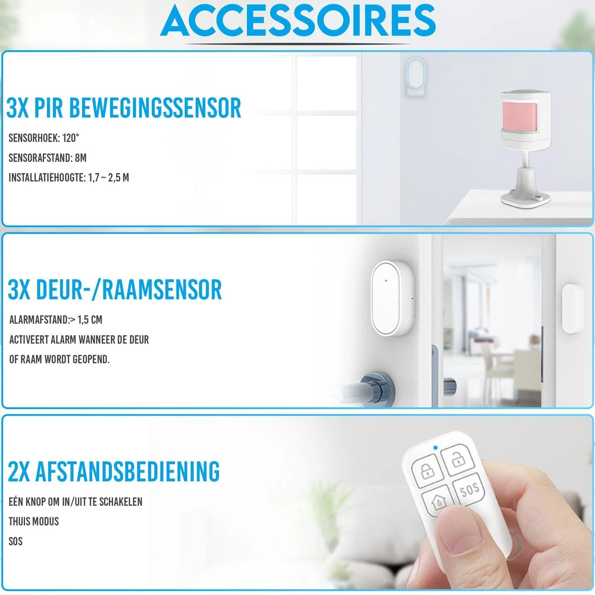 De meegeleverde sensoren zijn volledig draadloos en zijn zeer eenvoudig en snel te installeren door middel van de meegeleverde handleiding. De sensoren hebben aan de achterzijde handige plakstrips, waardoor u ze overal kan monteren. Binnen 30 minuten is uw hele woning of bedrijf volledig beveiligd en kunt u met een gerust hart het huis uit. Ook is het mogelijk om het systeem uit te breiden met meerdere sensoren, camera’s, rookmelders of een deurbel. De ontelbare mogelijkheden stoppen nooit en alles staat probleemloos met elkaar verbonden.