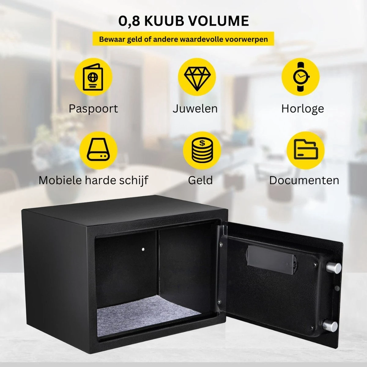 Door de vingerafdruk mogelijkheid kunt u gemakkelijk zelf de kluis openen, maar kunnen anderen dit niet.
