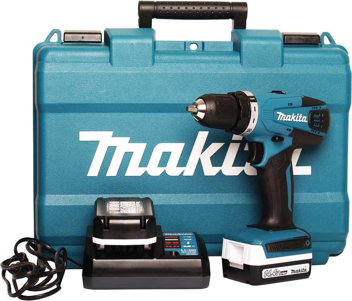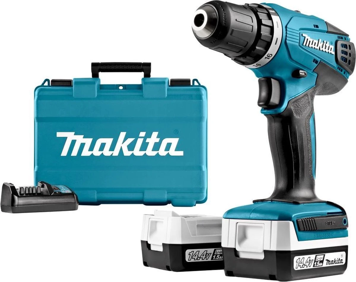 De Makita DF347DWE accu boor-/ schroefmachine heeft een gewicht van slechts 1,4 kg. De machine ligt hierdoor prettig in de hand en de softgrip biedt extra werkcomfort. Met de krachtige 14,5 V accu kun je met de nodige kracht aan de gang gaan. De variabele elektrische toerentalregeling zorgt voor optimaal schroefwerk. Wil je boren dan doe je dat met maximaal 1400 toeren per minuut.