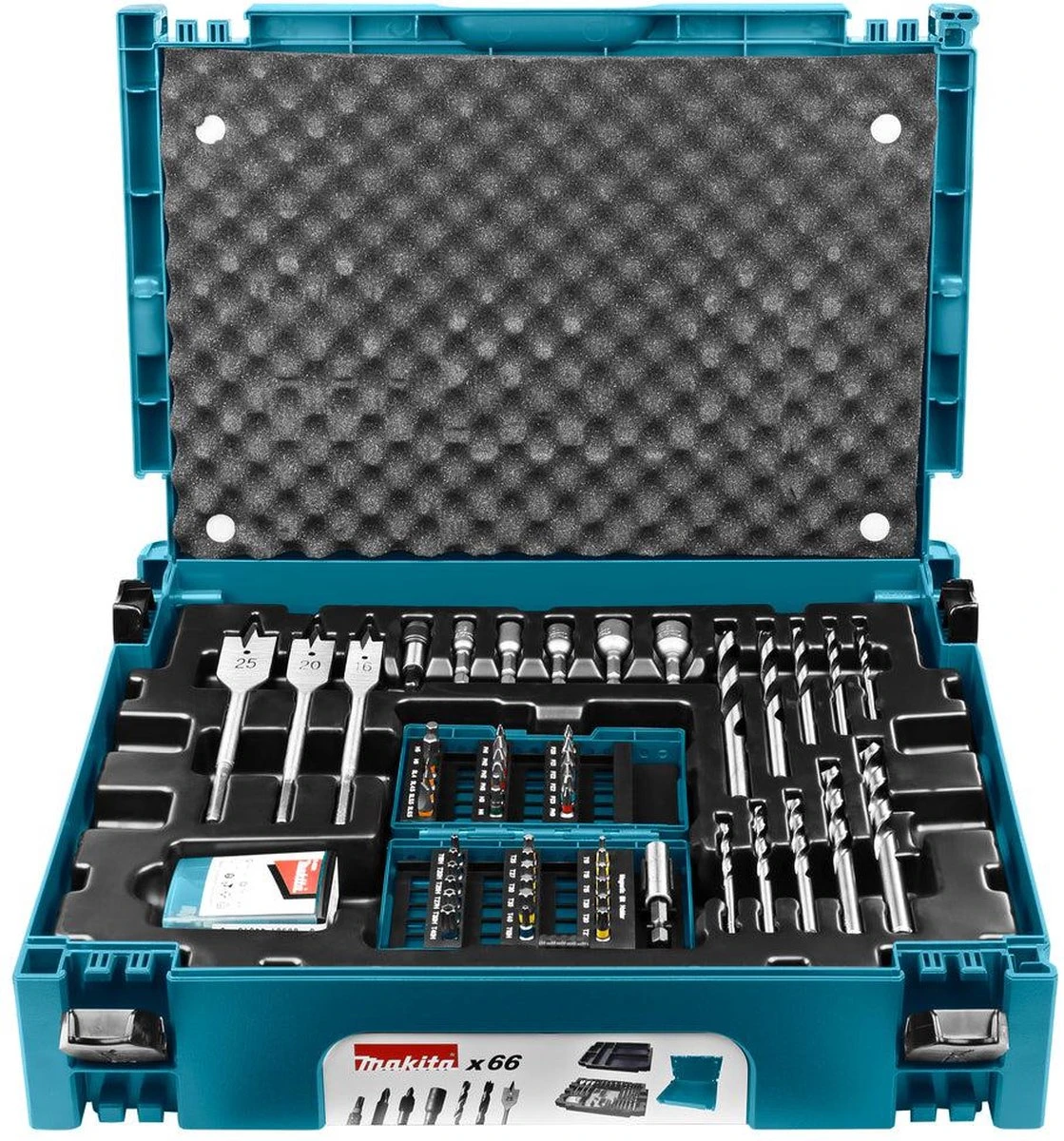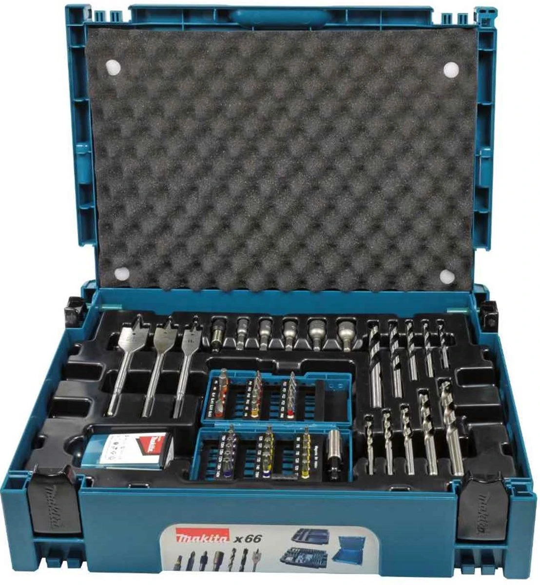 66-delige set bestaande uit de meest gebruikte maten boren en bits voor de binnen en buitenafwerking.