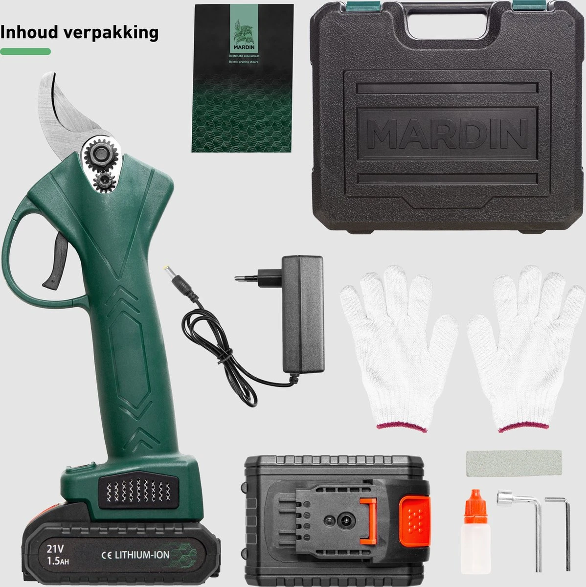 De Mardin® Snoeischaar is een krachtige elektrische snoeizaag die volledig draadloos is. De schaar wordt geleverd met een GRATIS extra accu, een opbergkoffer en met een flesje onderhoudsolie. De snoeizaag ligt lekker in de hand en heeft dan ook de perfecte grip om moeiteloos jouw planten en bomen bij te snoeien. Ideaal!