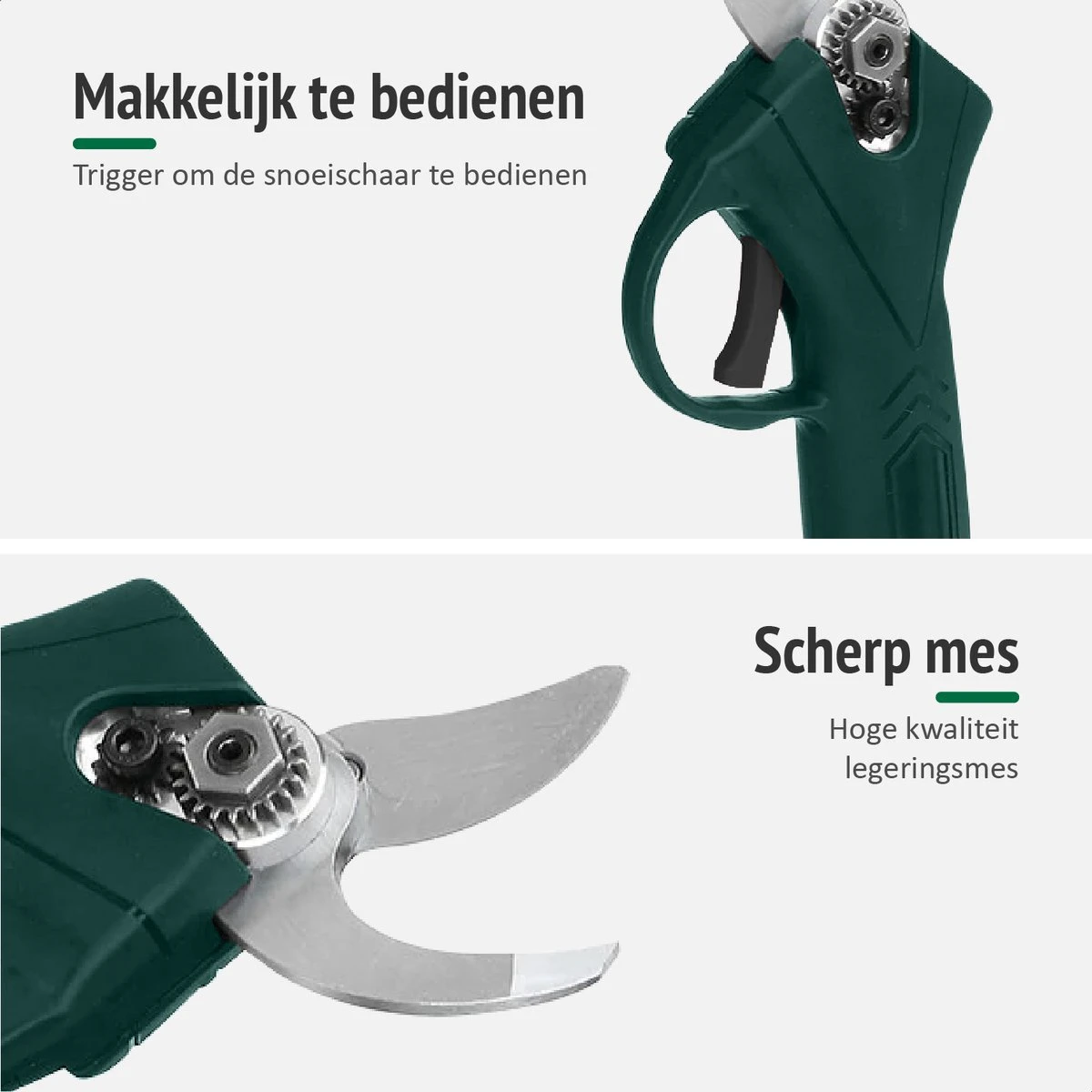 Ook voor professioneel gebruik – De krachtige motor, het hogesnelheids-mechanisme, de anti-slip-grip, het volledige draadloze aspect en de 2 duurzame accu’s zorgen ervoor dat ook voor de professionele hovenier deze unieke snoeischaar uitermate geschikt is.