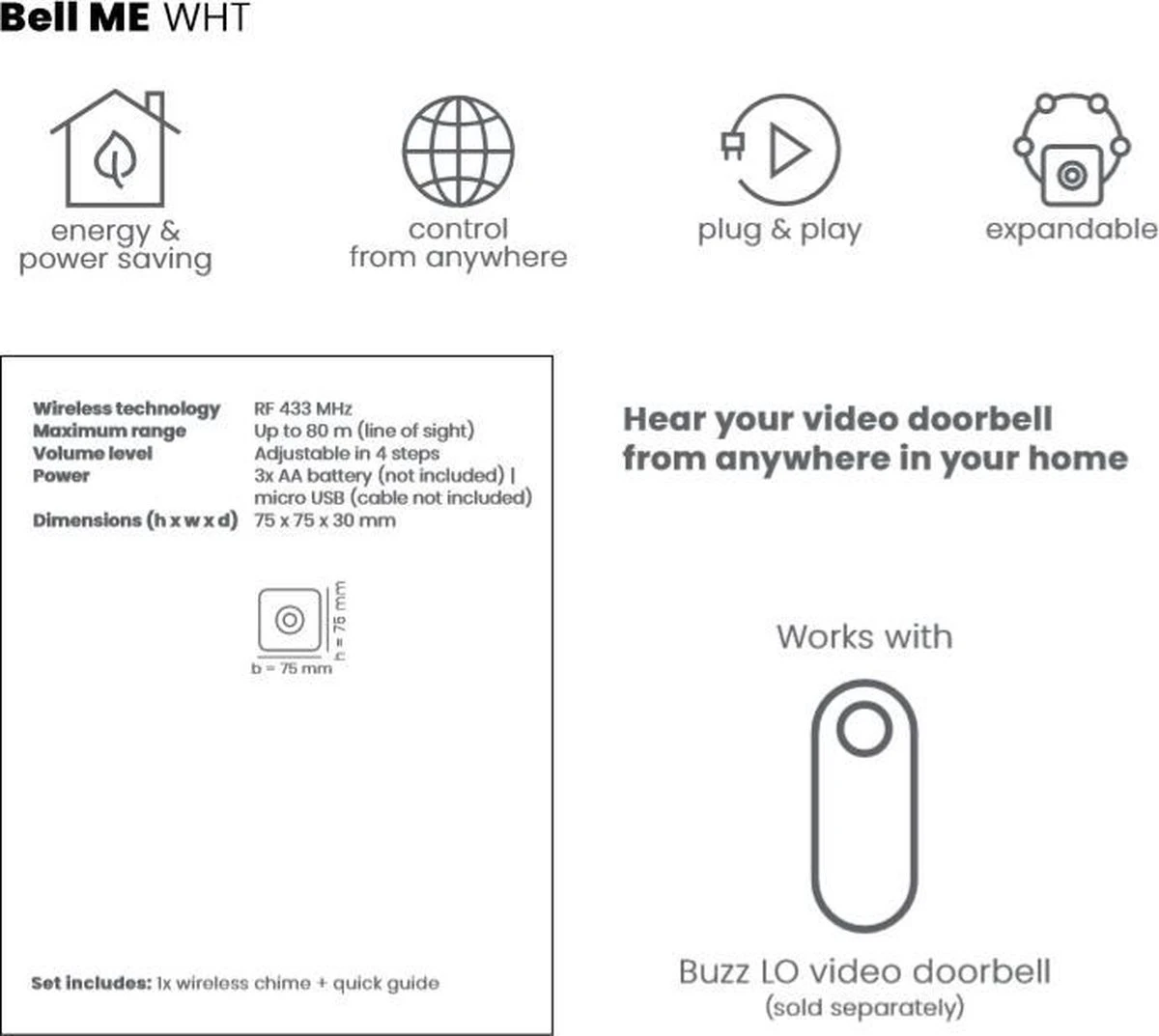 De Bell ME werkt alleen op de Buzz LO en is NIET aan te sluiten op andere deurbellen!