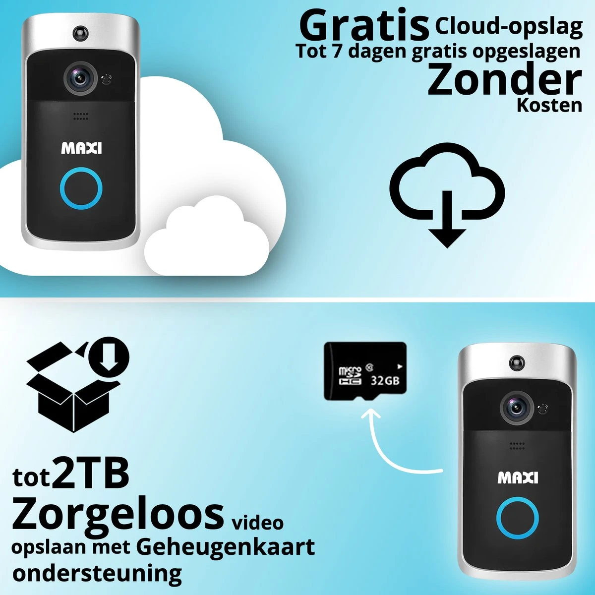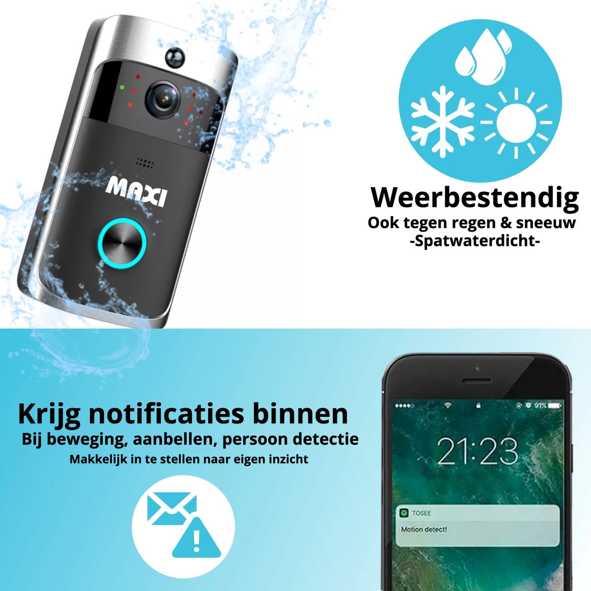Bent u op zoek naar een manier om altijd uw huis in de gaten te houden en bezoekers te detecteren? Wil je de pakketbezorger te woord staan wanneer je niet thuis bent? Dan is de MAXI video deurbel precies wat u nodig heeft! Binnen 5 minuten is deze draadloze deurbel geïnstalleerd en kunt u direct de meest kraakheldere beelden bekijken dankzij de infraroodcamera. Dag en nacht heeft u de beste beelden en kunt u ook altijd het aanbelmoment terugkijken. Bovendien ontvangt u push notificaties bij bewegingen voor de deur, aanbellen of personendetectie, zodat u nooit meer een bezoeker (gewenst of ongewenst) zult missen.