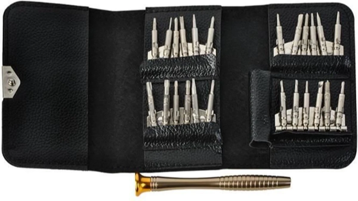 25 ELEMENTEN – Onze Precision Set bevat 24-bit hulpstukken en een Handy bithouder met brede staart, zodat zelfs kleinere back-uppins kunnen worden uitgedreven met de ruggensteun en een kleine hamer.