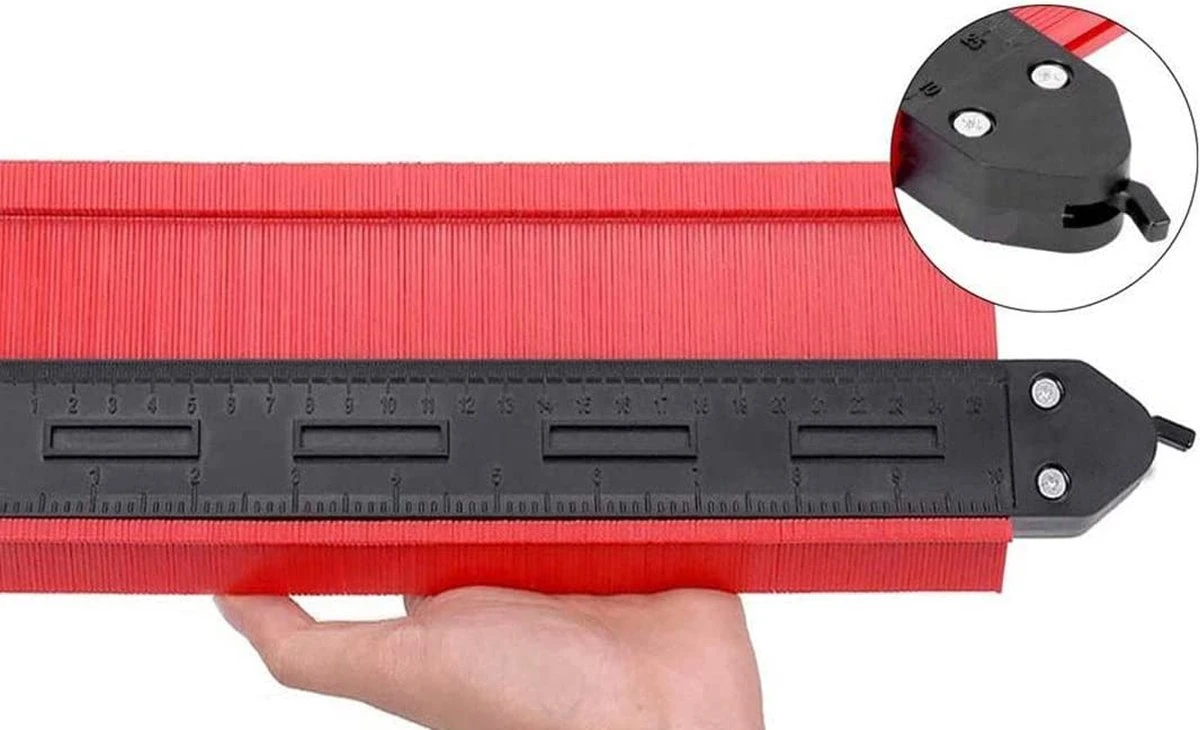 Deze contourmal biedt voor elke klusser de oplossing om gemakkelijker en nauwkeuriger, complexe vormen af te tekenen. De profielmal is een gereedschap tool waarbij je een exacte kopie kan aftekenen. De contourmal is gemaakt van ABS-kunststof, duurzaam en praktisch. Uiterst nauwkeurige kalibratie voor nauwkeurige metingen en maakt meten en snijden/zagen eenvoudiger. Je schuift de contourmal tegen het object en de vorm blijft in de contourmal staan. Met de ingebouwde lock is deze vorm vast te zetten. Zo kun je nauwkeurig de vorm overtekenen op het materiaal dat je wilt uitzagen. Vervolgens zaag/knip je het materiaal in en zal het perfect passen. Op deze manier voorkom je te onnodig grote gaten in het materiaal dat je wilt leggen