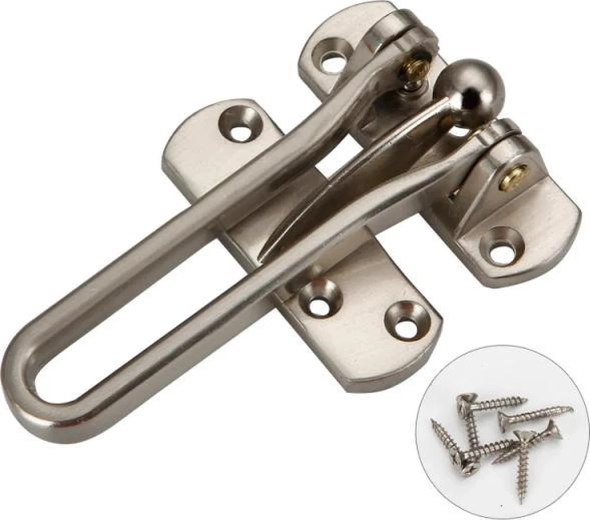 Dankzij de solide structuur is het veel effectiever en tegelijkertijd kan de deur veilig worden geopend zonder het risico dat een onbevoegd persoon het pand betreedt. De kierstandhouder zal voorkomen dat de inbreker de deur trekt. Het wordt gebruikt om het appartement af te sluiten als er gezinsleden zijn. Als u wilt zien wie er voor de deur staat te wachten, opent u deze gewoon over de breedte van de opening.