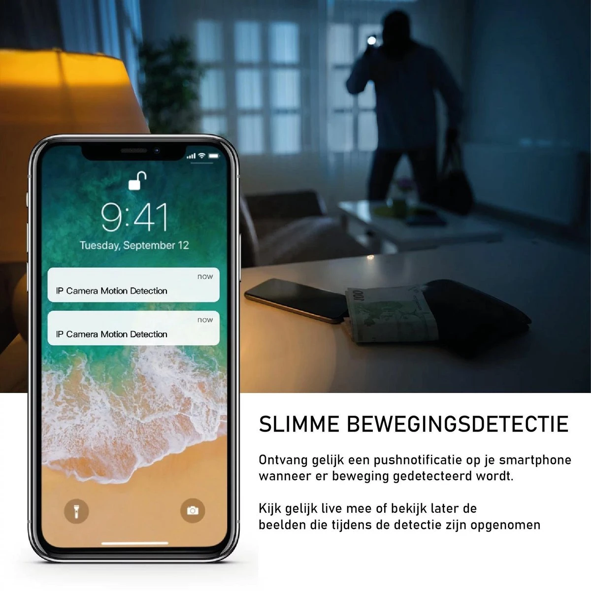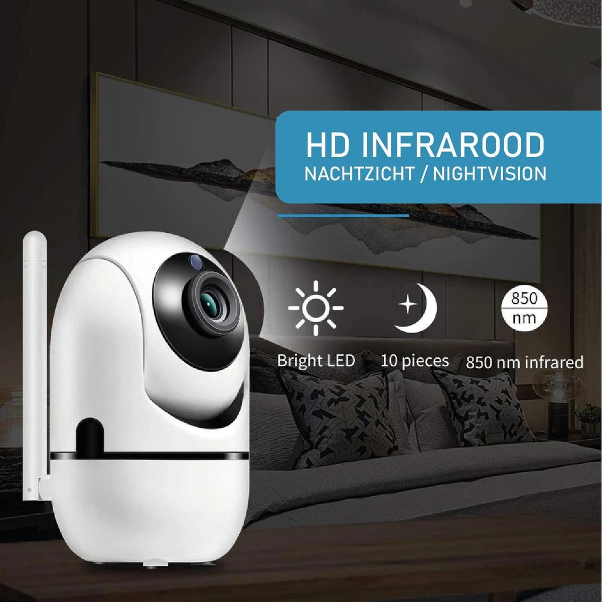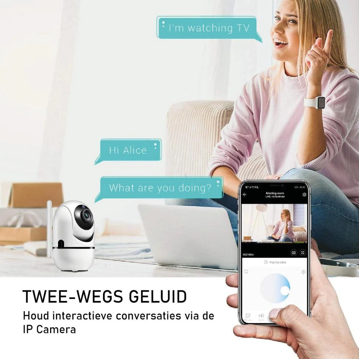 Bekijk de beelden in een resolutie van 1920*1080 en sla ze gemakkelijk op in een SD card. Je kunt ook gebruik maken van de spraakfunctie: Praat en luister via de camera doormiddel van de app. Bekijk live via je smartphone, tablet of computer. De camera heeft ook een nachtfunctie en nachtzicht is dus mogelijk. Ook heeft de camera een bewegingsdetector: Wanneer de camera beweging ziet zal je een bericht ontvangen op je mobiel en kun je direct live meekijken. Gebruik de IP camera voor beveiliging, maar ook gewoon voor het oppassen op je kinderen of je huisdieren.