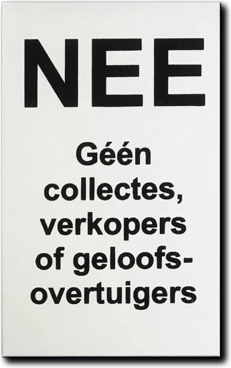 NEE Geen collectes, verkopers of geloofsovertuigers