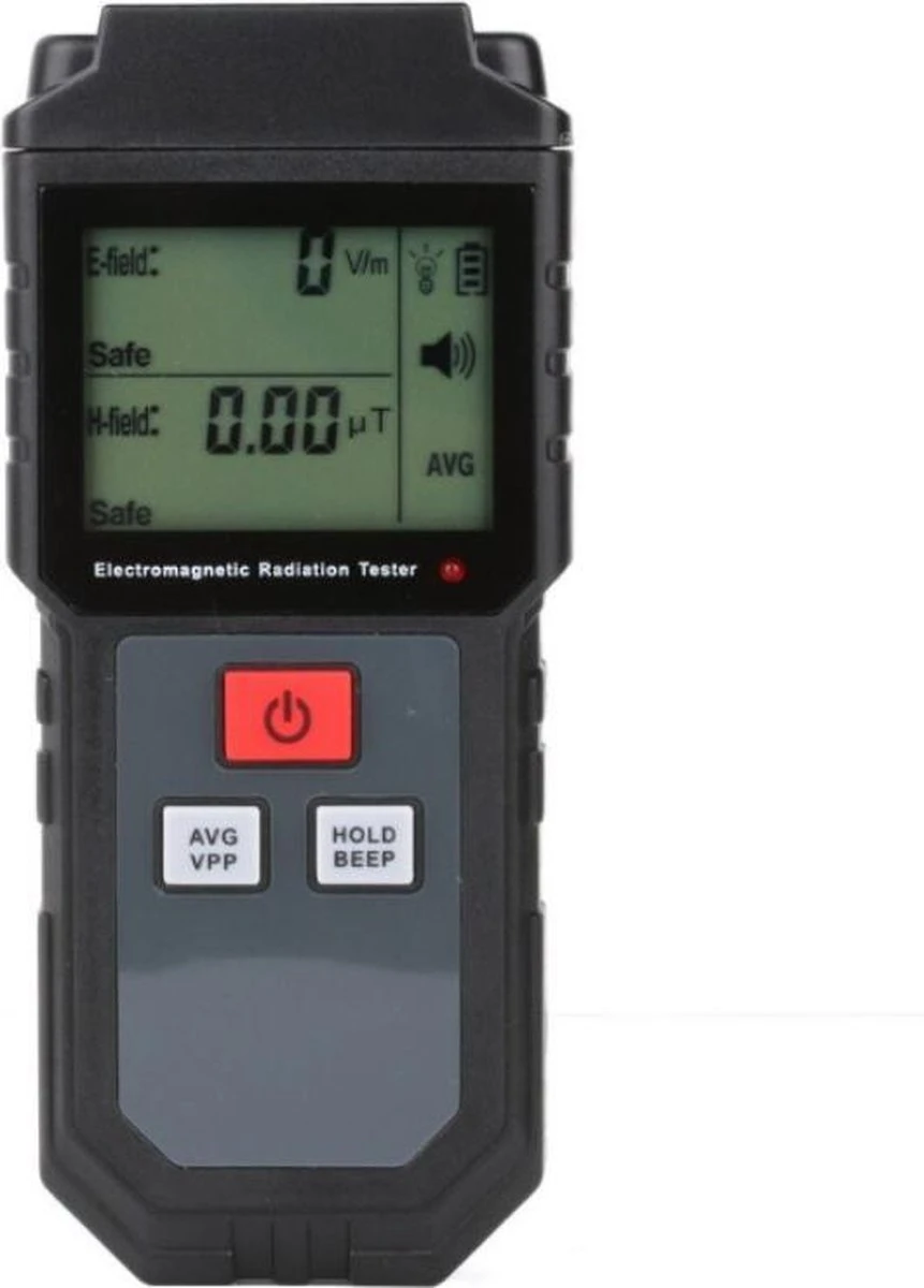 - Uitgerust met een ingebouwde elektromagnetische stralingssensor, die de stralingswaarde kan weergeven op het heldere digitale LCD-display na verwerking door een controle-microchip.