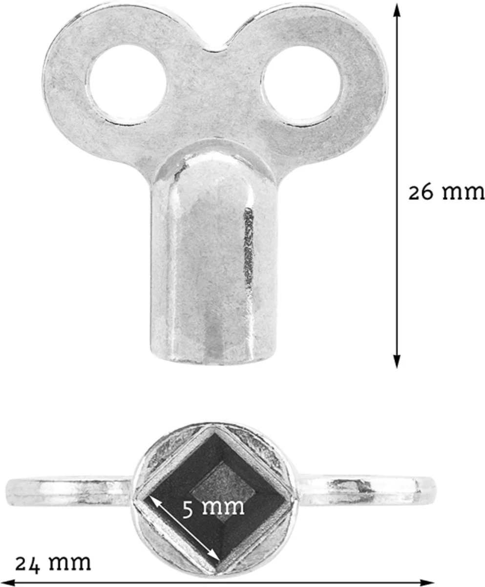 Set van 2 vierkante sleutels voor het snel en ongecompliceerd openen en ontluchten van radiatoren om het verwarmingsvermogen te verhogen.