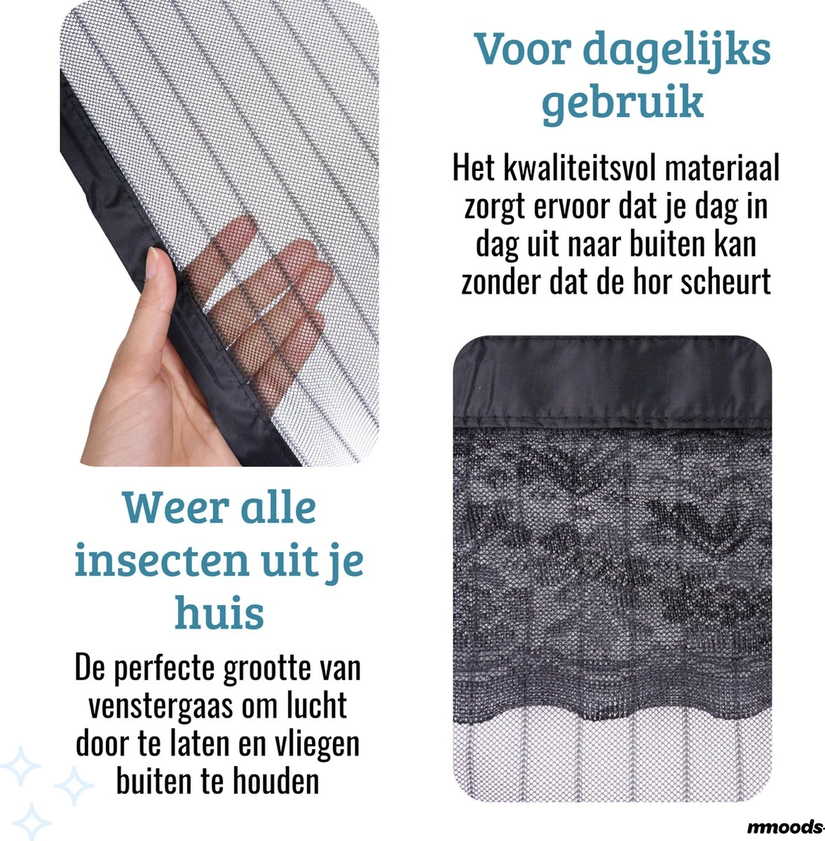 Met de Mmoods zwarte vliegengordijn kan je eindelijk ongestoord genieten van de mooie buitenwereld zonder last te hebben van vervelende insecten.