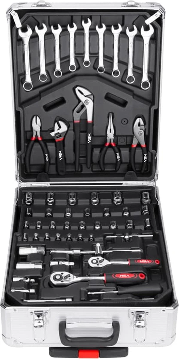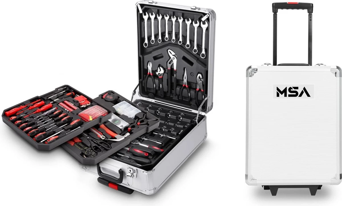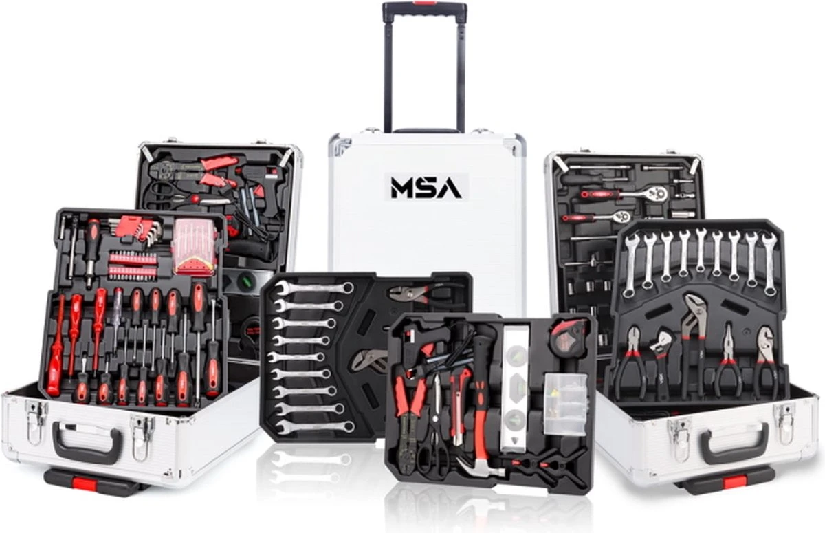 Met deze enorme gereedschapstrolley van MSA heb je altijd alle belangrijke gereedschappen bij de hand. Maar liefst 610 stukken gereedschap staan tot je beschikking. Al het gereedschap ligt overzichtelijk opgeborgen in 4 inlays. Maak snel gebruik van deze supervoordelige aanbieding!