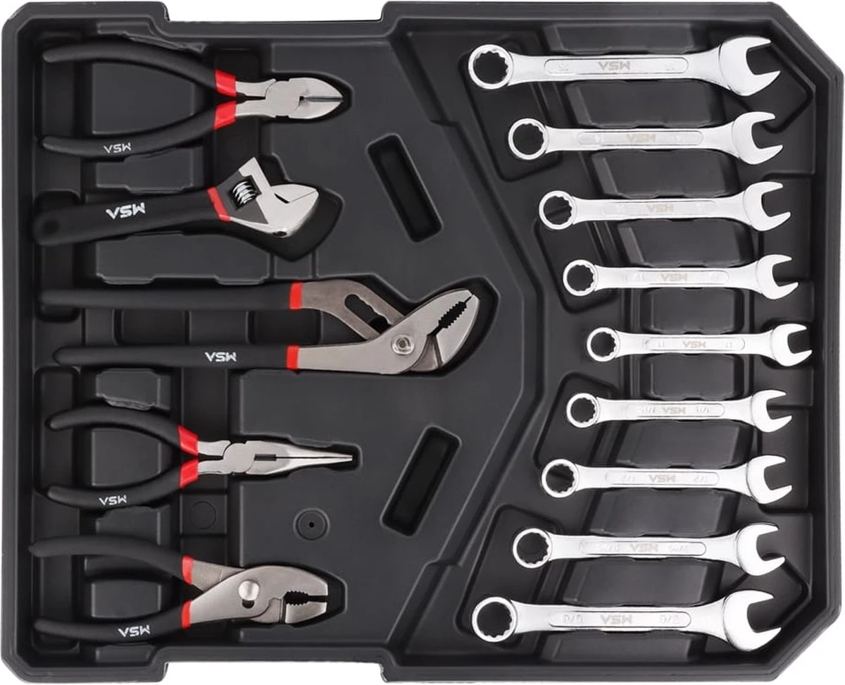 Het gereedschap is geschikt voor zowel de doe-het-zelver als voor professionals. Het gereedschap wordt veel gebruikt in autowerkplaatsen, servicediensten, de industrie en door monteurs. De koffer zit boordevol kwaliteitsgereedschap, gemaakt van hoogwaardig Chroom Vanadium staal. Dankzij de wieltjes en het uitschuifbare handvat neem je de gereedschapskoffer moeiteloos overal mee naartoe.