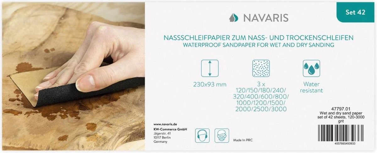 - DOE-HET-ZELF: Deze schuurpapierset van Navaris is ideaal voor klusjes in en rondom het huis, voor hobbyprojecten en voor de auto. Met de vellen slijp en polijst je harde oppervlakken zoals metaal, steen, keramiek en hout.