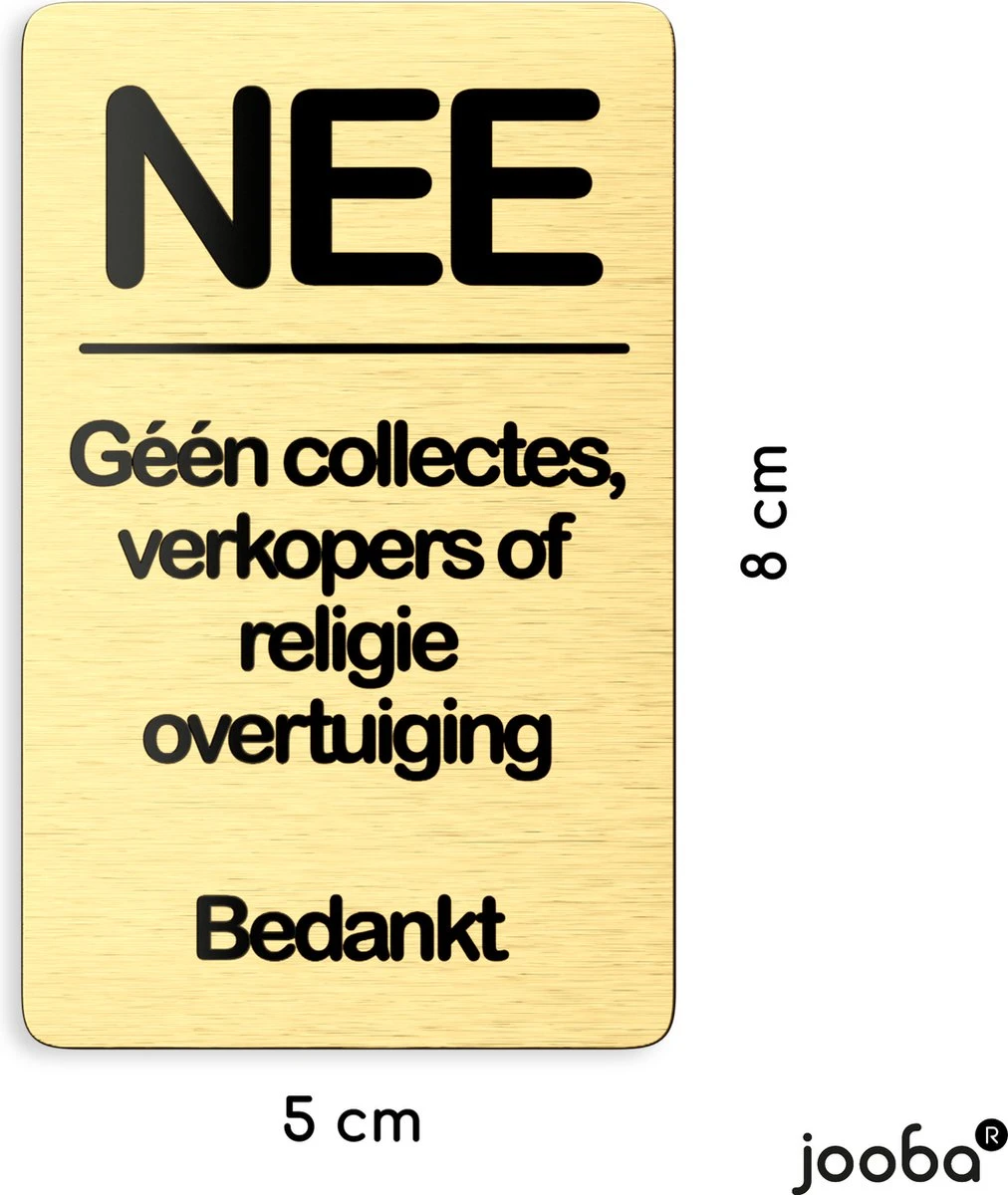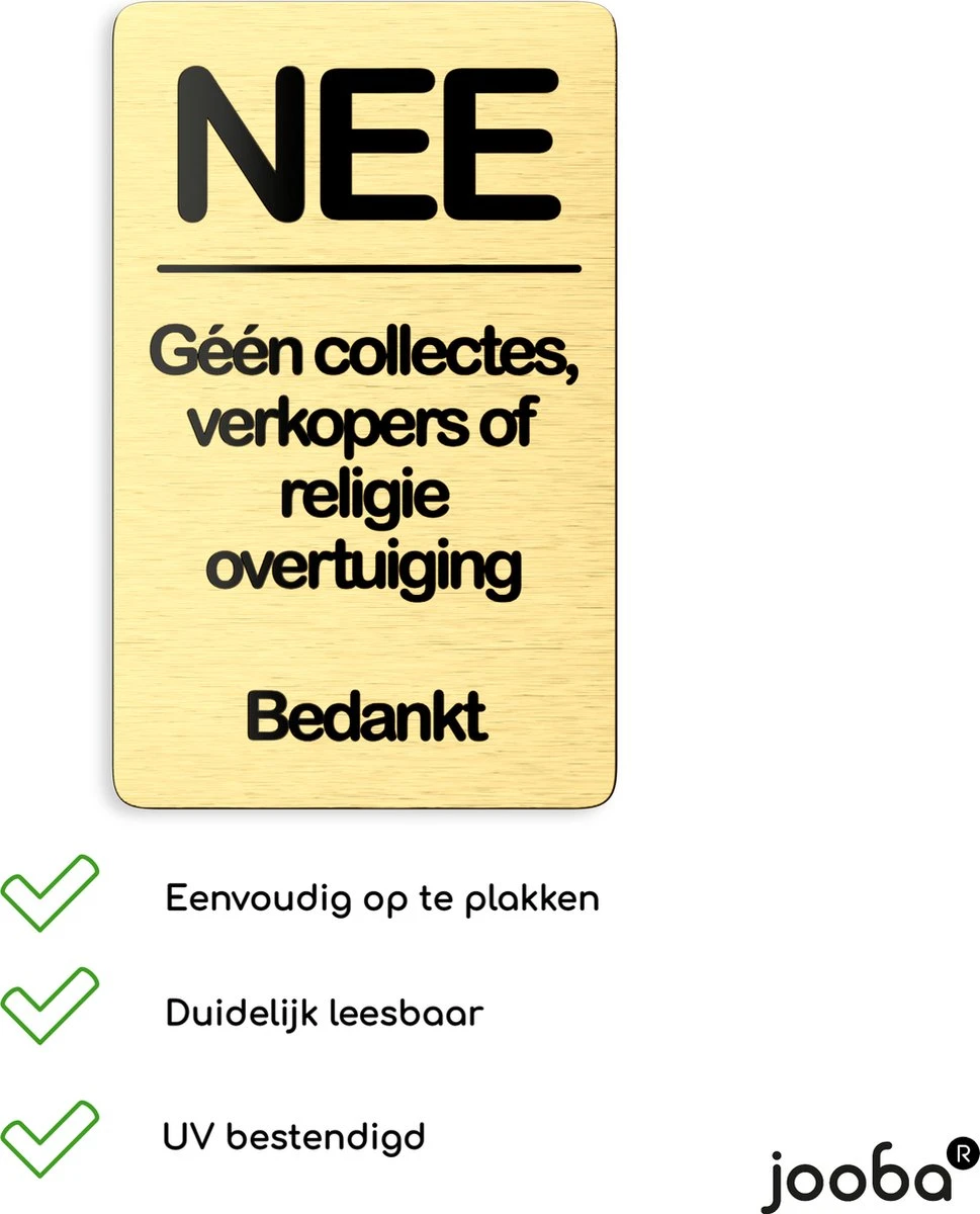 Op een vriendelijke en nette manier mensen van de deur houden? Bestel dan dit colportage deurbordje. Met dit deurbordje geef je duidelijk en op een vriendelijke manier aan de je niet zit te wachten op een verkoper of Jehova getuige en dat je ook geen zin hebt in de zoveelste collectant. Met duidelijke letters valt dit colportage deurplaatje meteen op. Ons advies is om het plaatje in de buurt van de deurbel te plaatsen zodat hij niet over het hoofd te zien is. De colportage sticker is gemaakt van kunststof en is UV bestendigd.