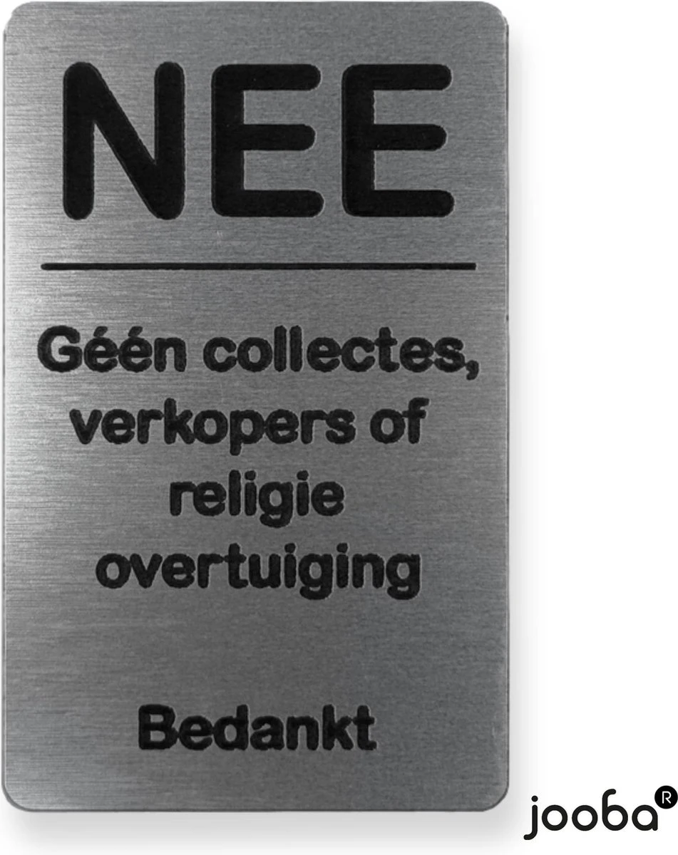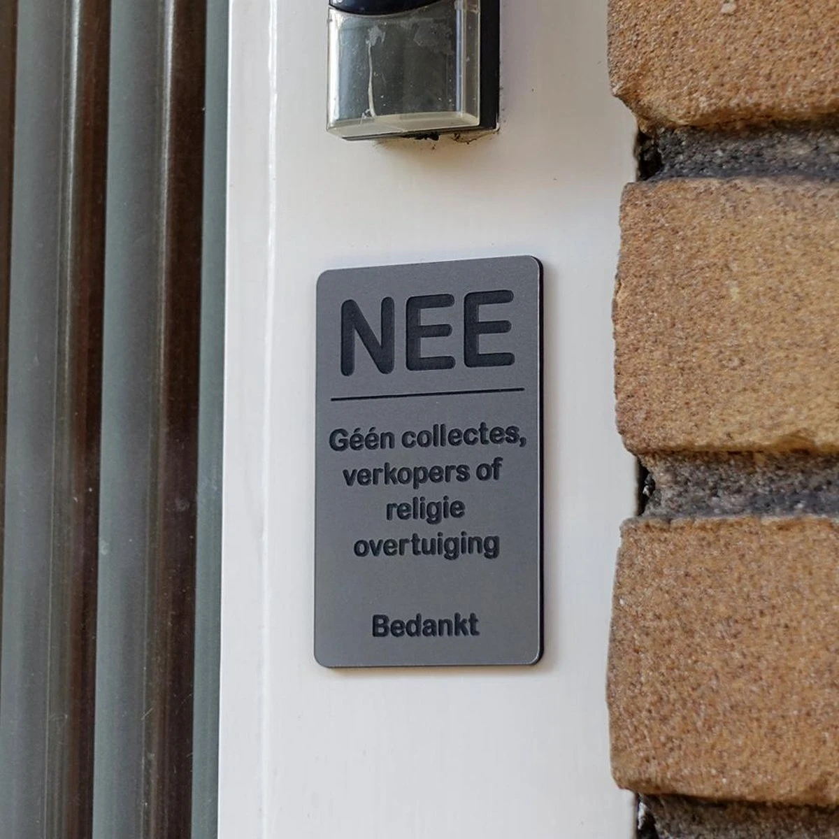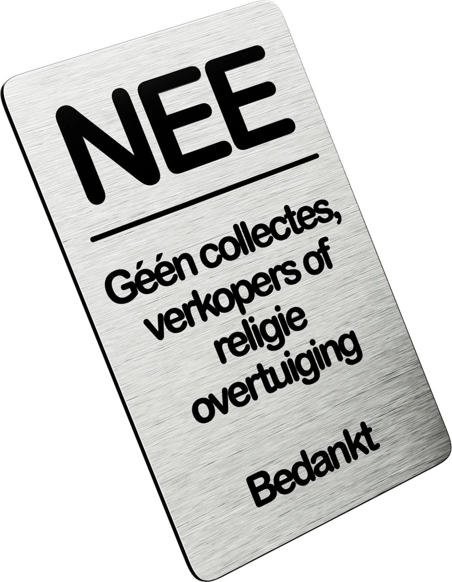 Op een vriendelijke en nette manier mensen van de deur houden? Bestel dan dit colportage deurplaatje. Met dit deurplaatje geef je duidelijk en op een vriendelijke manier aan de je niet zit te wachten op een verkoper of Jehova getuige en dat je ook geen zin hebt in de zoveelste collectant.