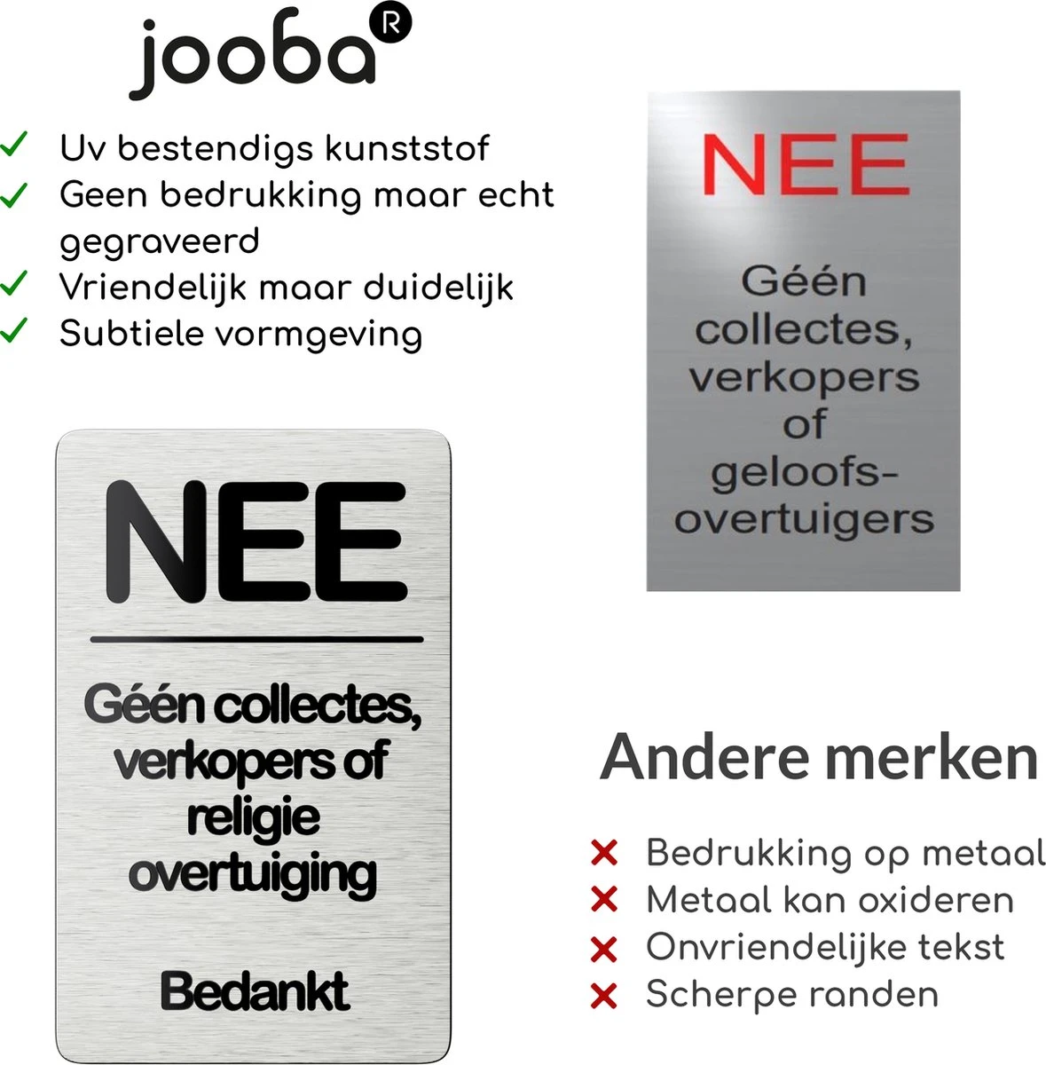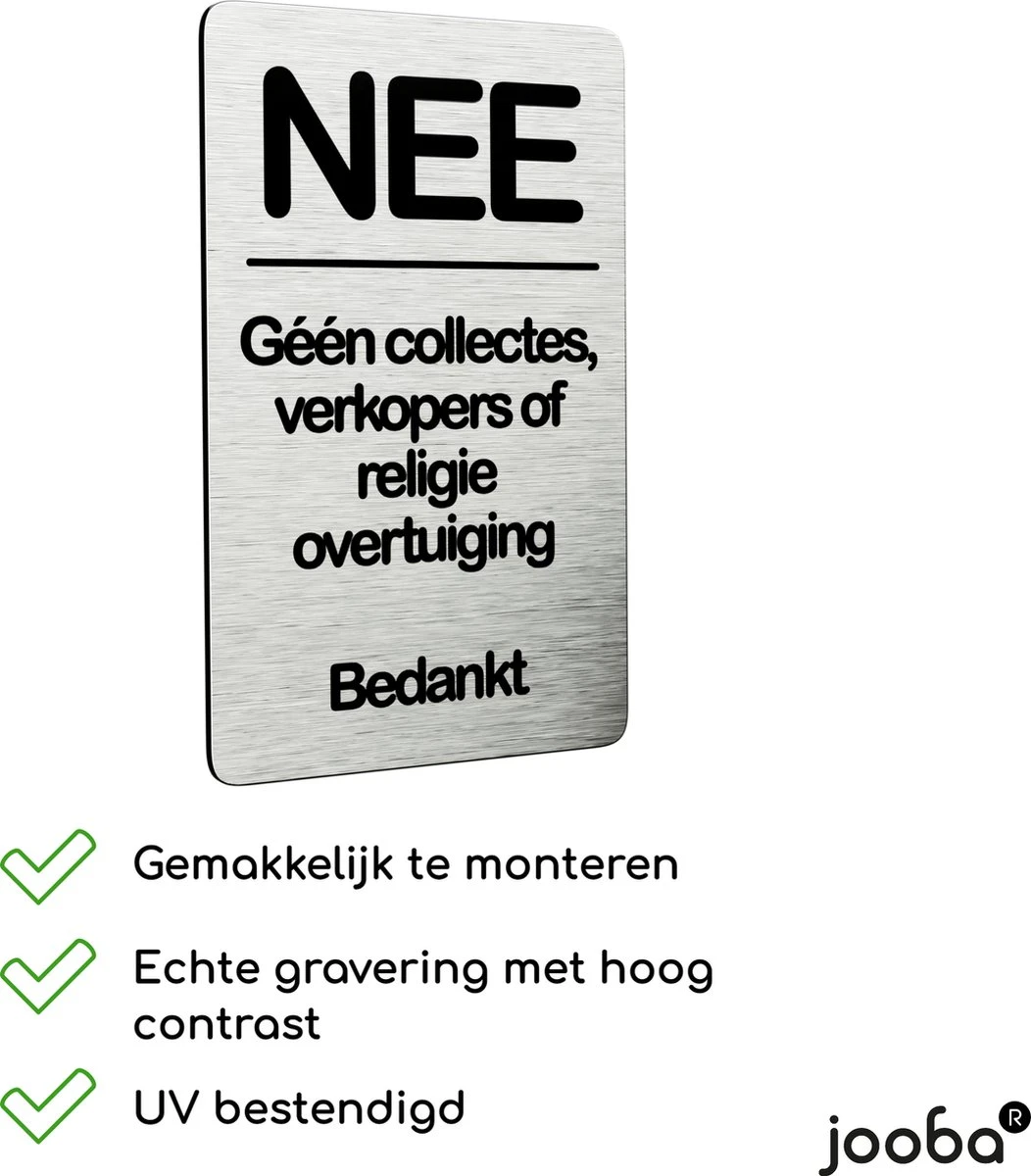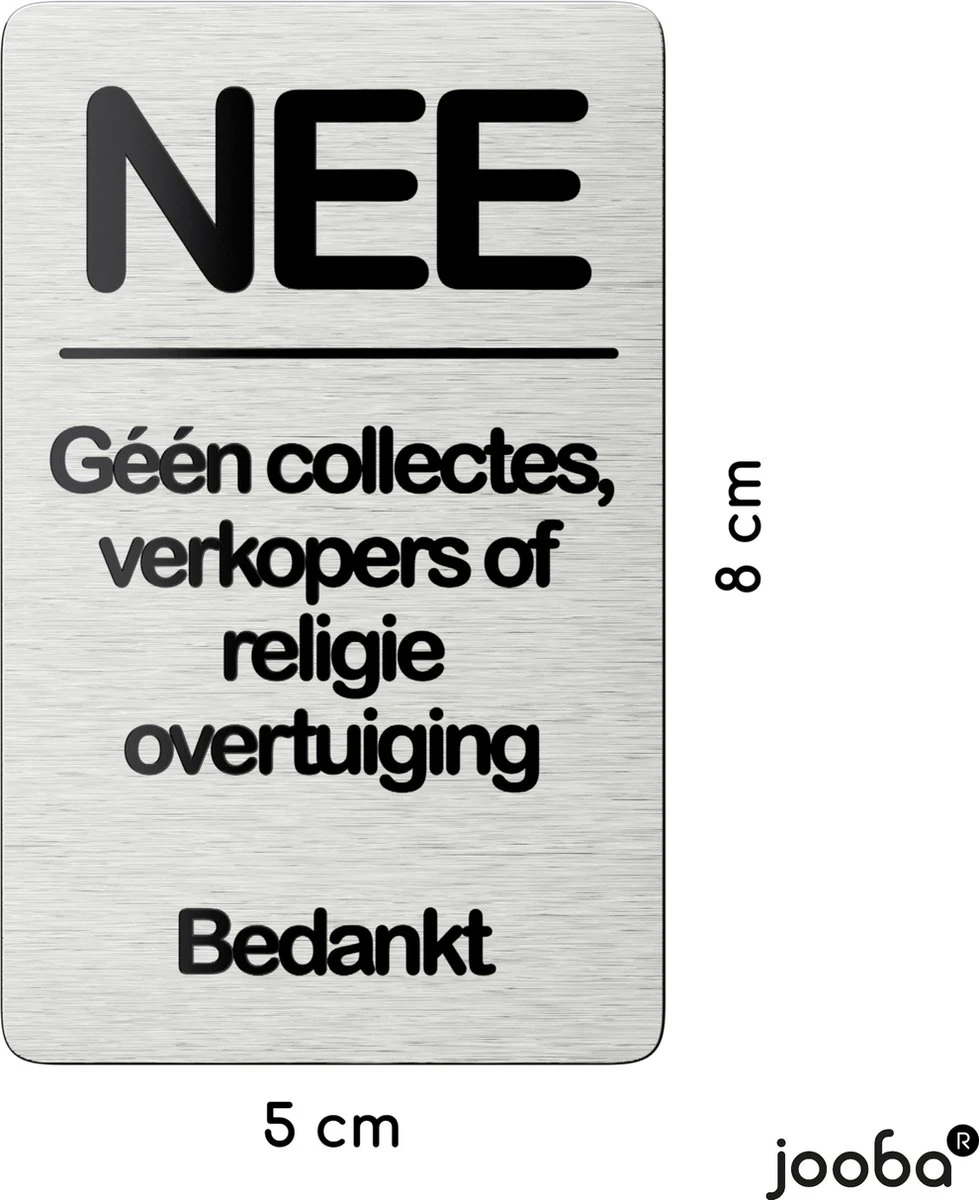 Op een vriendelijke en nette manier mensen van de deur houden? Bestel dan dit colportage deurplaatje. Met dit deurplaatje geef je duidelijk en op een vriendelijke manier aan de je niet zit te wachten op een verkoper of Jehova getuige en dat je ook geen zin hebt in de zoveelste collectant.