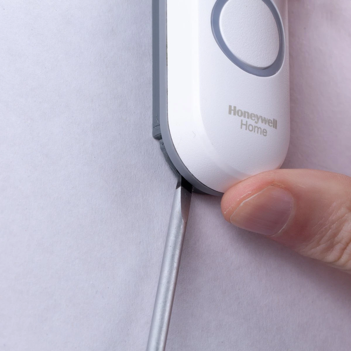 Stap 1: Verwijder de deurbel door met een platte schroevendraaier op het lipje aan de onderkant van de deurbel te drukken, als deze nog bevestigd is.