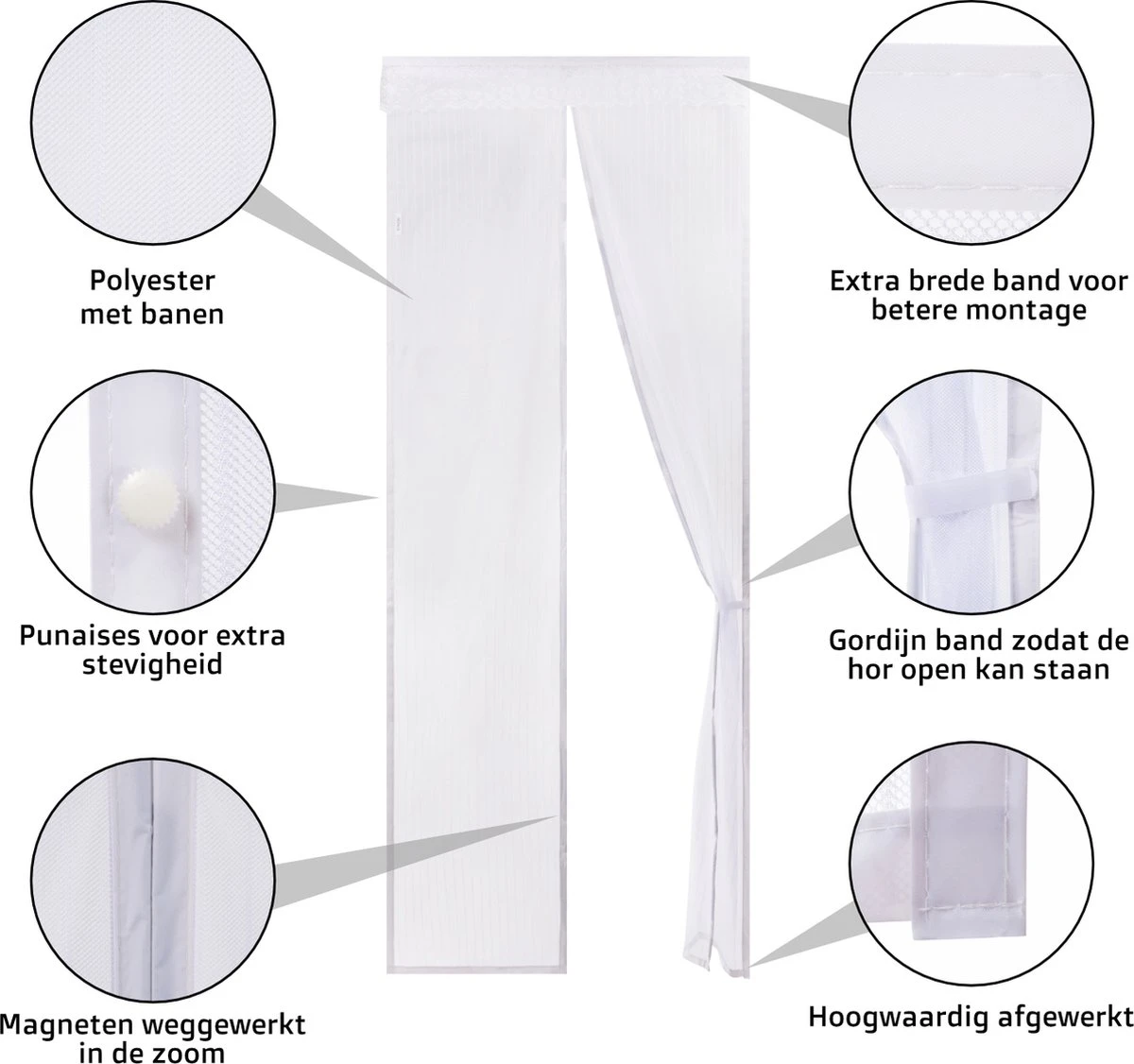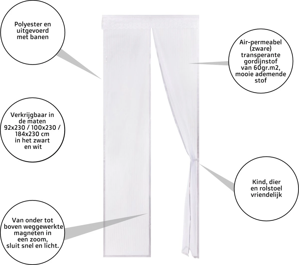 - OOK Verkrijgbaar voor dubbele openslaande deuren (184 x 230 cm in zwart en wit polyester)