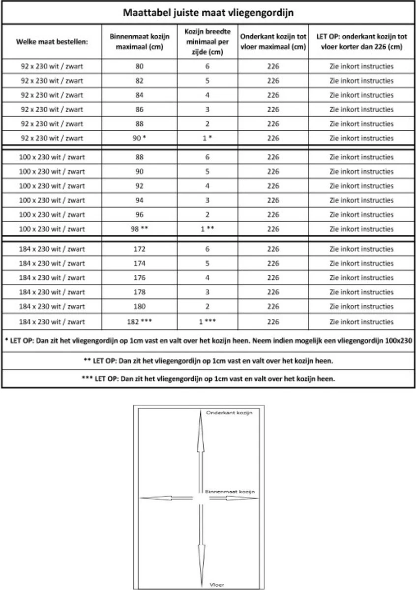 INKORTEN VLIEGENGORDIJN: De deurhor is in hoogte in te korten (max 10 cm doormiddel van omrollen en vastzetten met punaises), dit kun je doen aan de bovenzijde. Voor het inkorten met meer dan 10cm, zie hiervoor onze uitleg in pdf-bijlage bij productinformatie of vraag deze op via onze klantenservice.