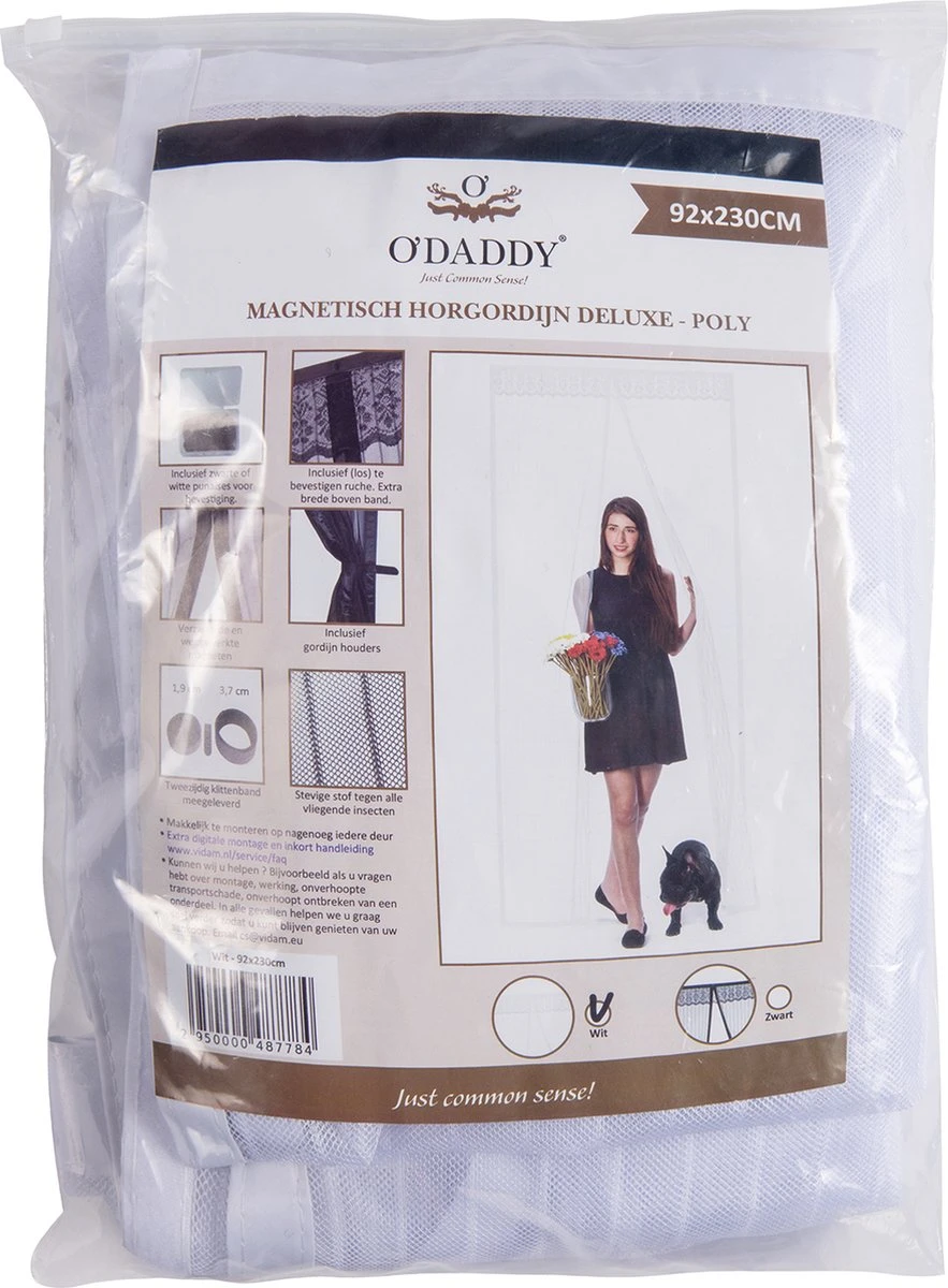 De O’DADDY deurgordijn deluxe is het vliegengordijn die niet openwaait! Bij deze magneet hor zijn er magneten gebruikt over de gehele hoogte welke onzichtbaar zijn weggewerkt in een zoom, dan kan je ook niet achter de magneten van het insectenhor blijven hangen. Door deze constructie sluit de horgordijn voor deur sneller, beter en zal deze niet meer openwaaien. Daarbij komt dat dit magneetgordijn huisdier, rolstoel en kindvriendelijk is, zelfs als je huisdier er enthousiast doorheen vliegt.
