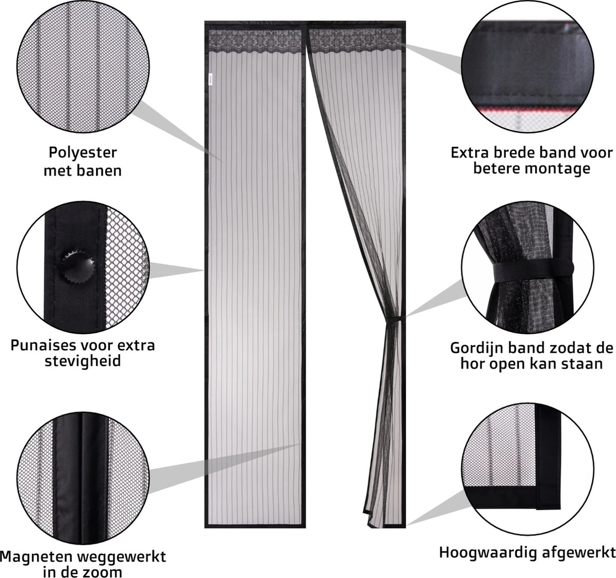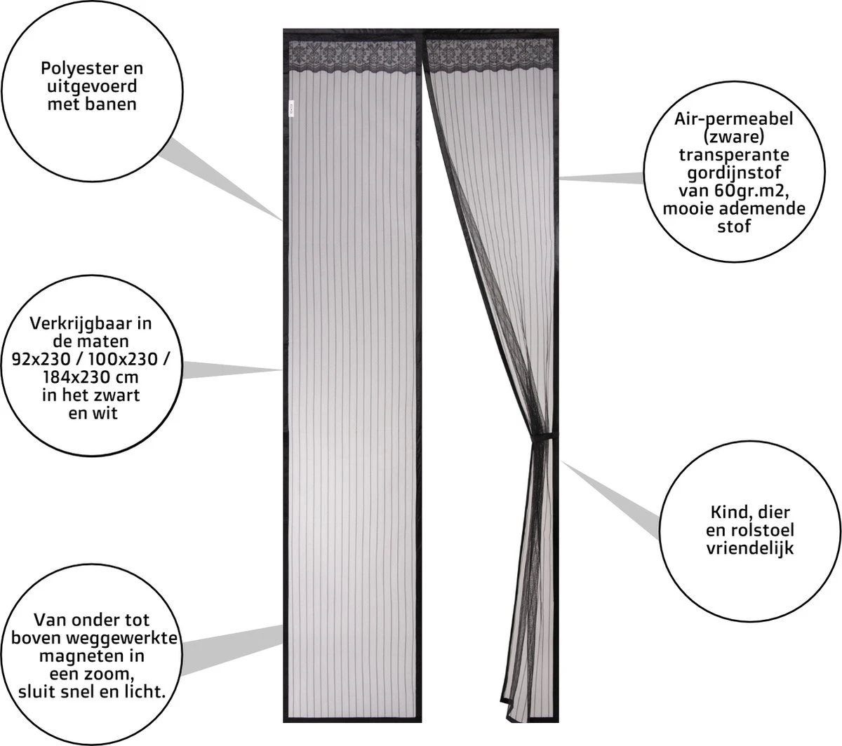 - OOK Verkrijgbaar voor dubbele openslaande deuren (184 x 230 cm in zwart en wit polyester)