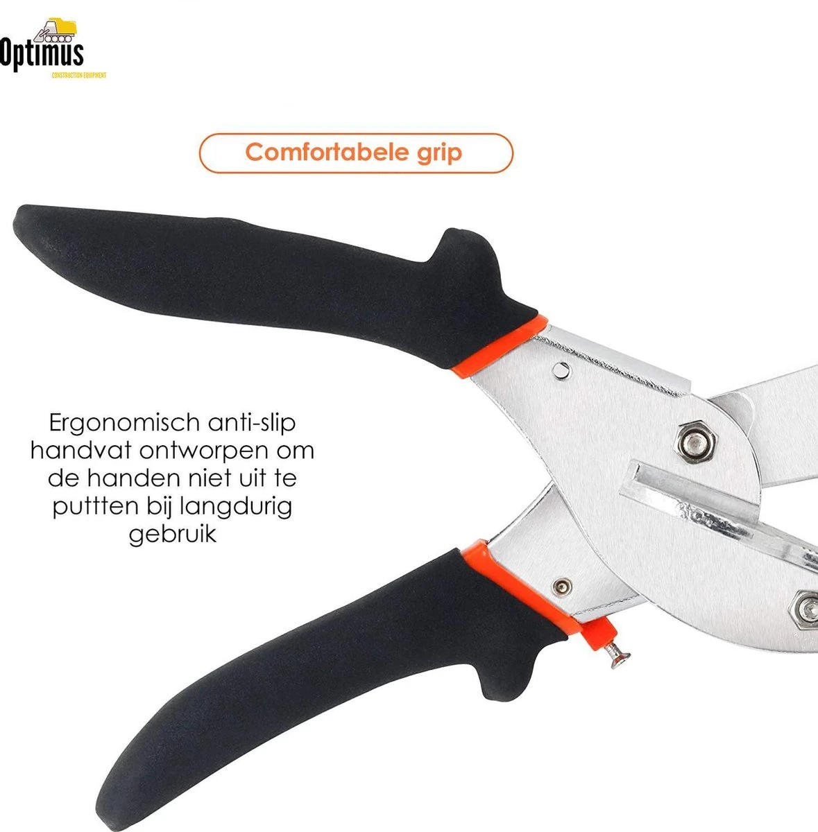 Wanneer je een laminaat vloer aan het leggen bent dan kom je er niet aan onderuit om de randen af te werken met laminaat plinten. Maar hoe doe je dat het beste? Gelukkig heeft Optimus een makkelijke en goedkope oplossing! Met de Optimus Plintenknipper is het nauwkeurig knippen van plinten een zeer eenvoudig en snel klusje. Deze verstekschaar van roestvrijstaal maakt een versnijding mogelijk van 45 tot 135 graden en komt met een extra SK5 stalen mes.