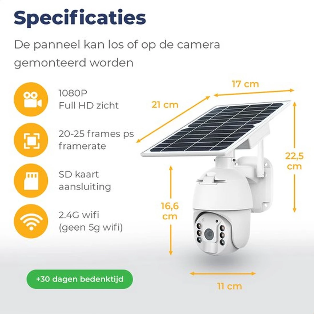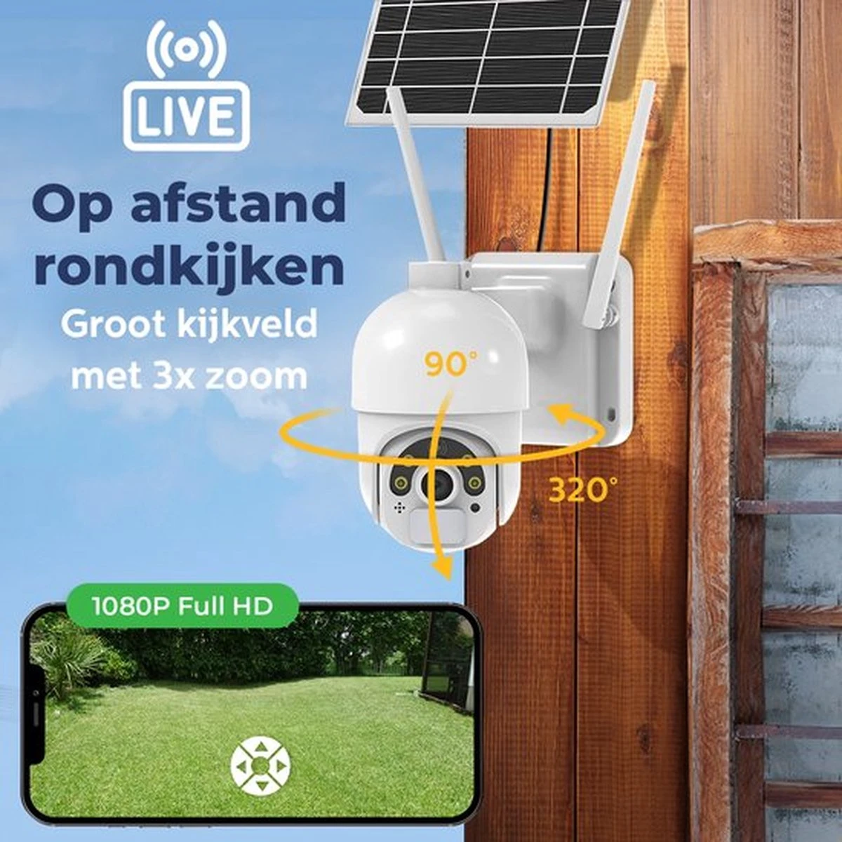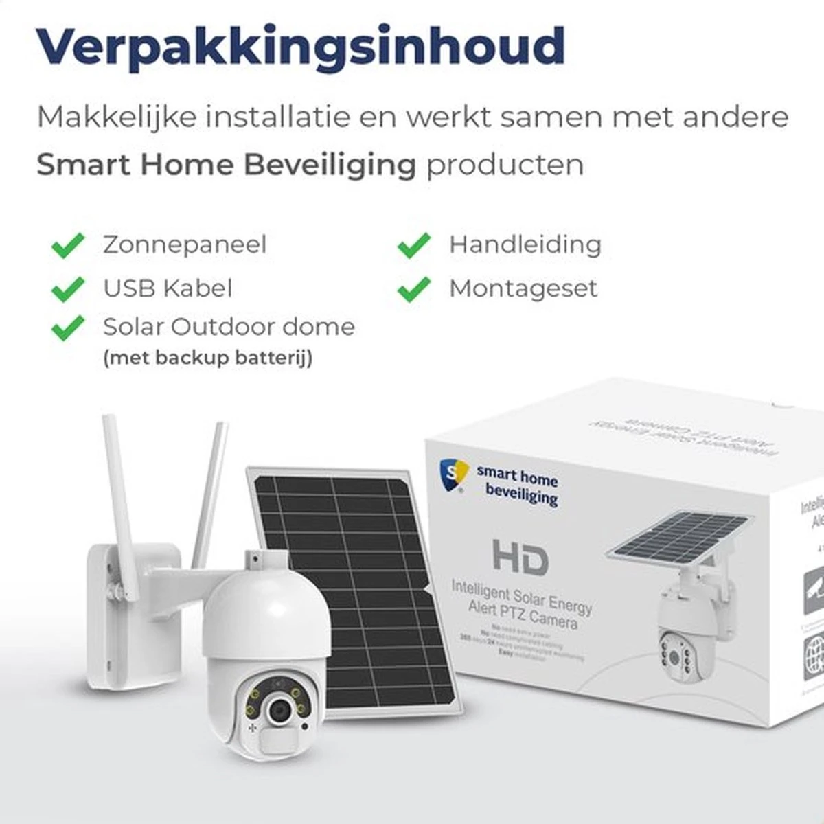 Solar Powered Smart Alarm PTZ Security Camera is een eenmalige aanschaf en werkt zonder verdere (abonnement) kosten. In tegenstelling tot andere camera’s.